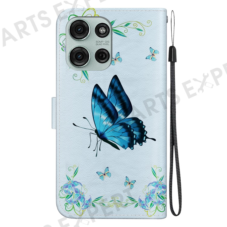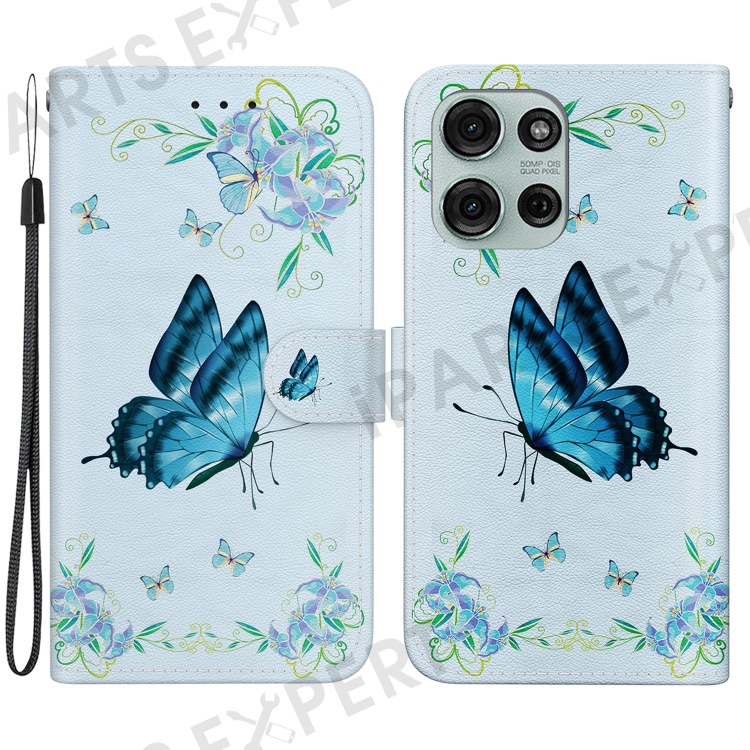 For Motorola Moto G75 5G Wallet Phone Case Anti-Drop Leather Flip Cover Pattern Printing - Blue Butterfly Flower