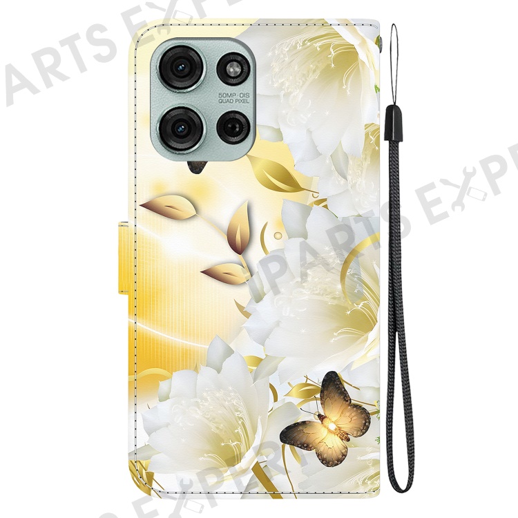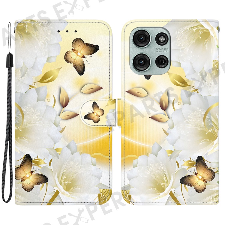 For Motorola Moto G75 5G Wallet Phone Case Anti-Drop Leather Flip Cover Pattern Printing - Gold Butterfly Flower