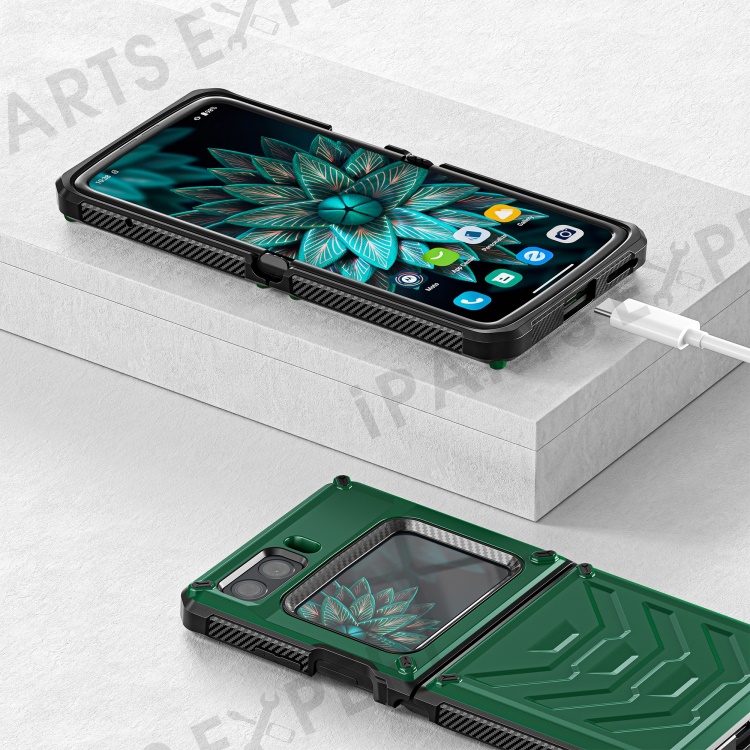 For Motorola Moto Razr 2022 5G Rugged Series Shockproof TPU Frame + PC Back Hybrid Case Phone Cover - Green