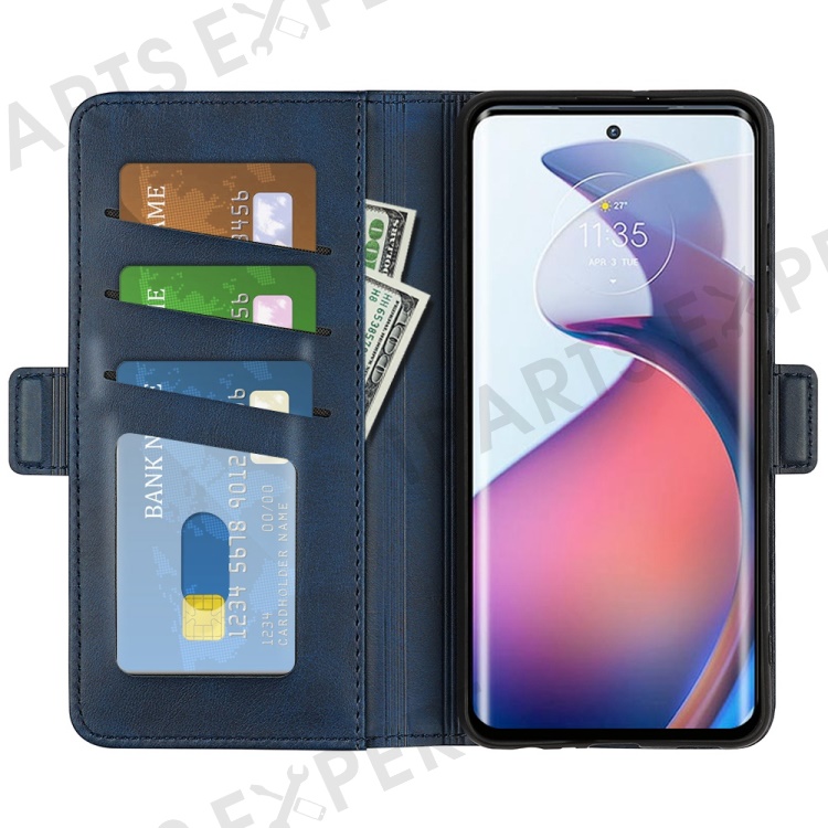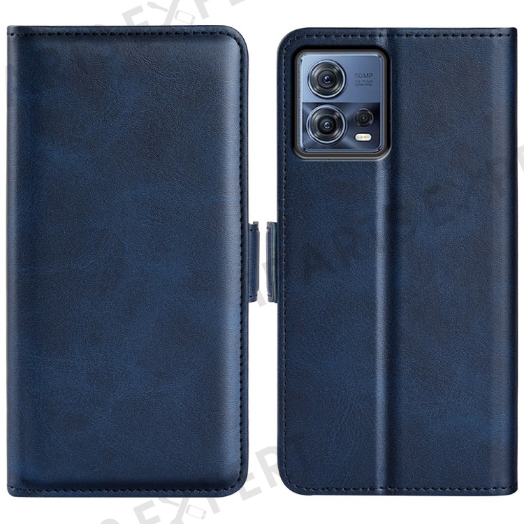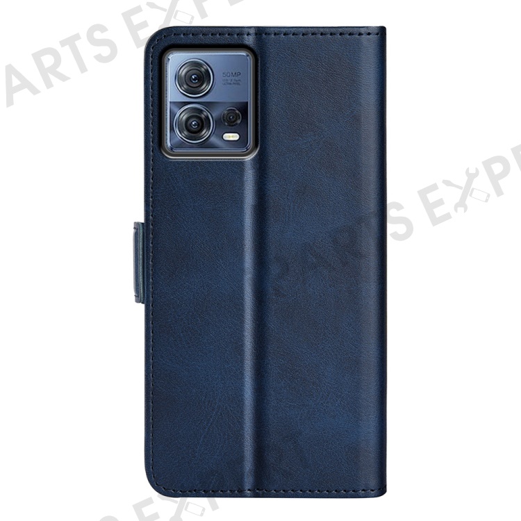 For Motorola Moto S30 Pro 5G / Edge 30 Fusion 5G Full Protection Phone Case Textured PU Leather Dual Magnetic Clasp Folio Flip Stand Wallet Cover - Blue
