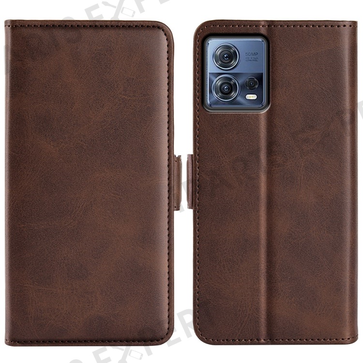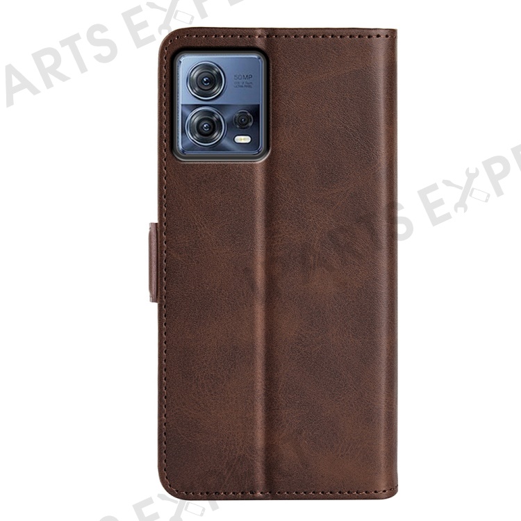 For Motorola Moto S30 Pro 5G / Edge 30 Fusion 5G Full Protection Phone Case Textured PU Leather Dual Magnetic Clasp Folio Flip Stand Wallet Cover - Brown