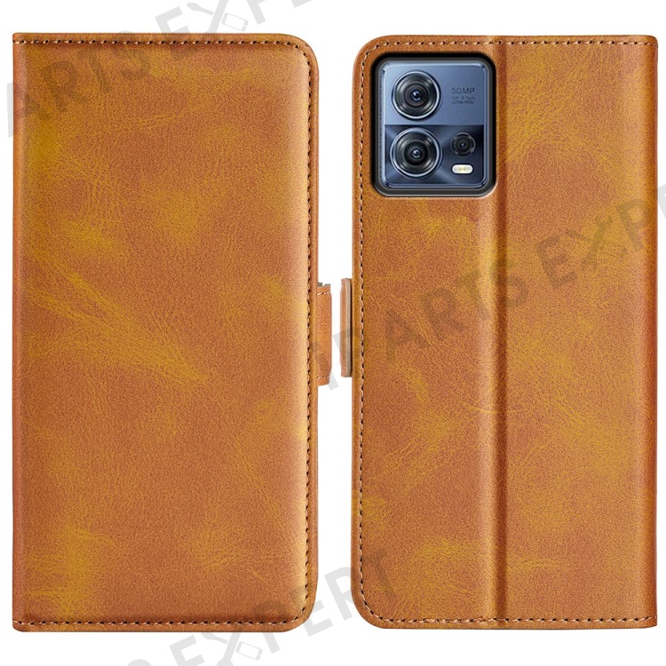 For Motorola Moto S30 Pro 5G / Edge 30 Fusion 5G Full Protection Phone Case Textured PU Leather Dual Magnetic Clasp Folio Flip Stand Wallet Cover - Yellow