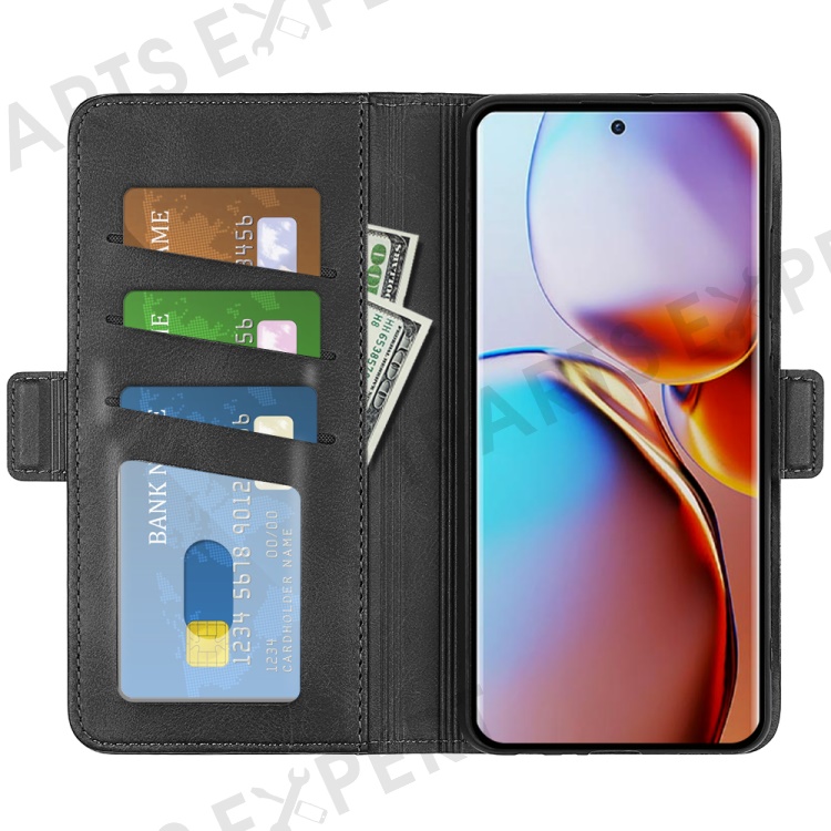 For Motorola Moto X40 5G / Edge 40 Pro 5G Dustproof PU Leather Wallet Phone Case Calf Texture Stand Cover - Black