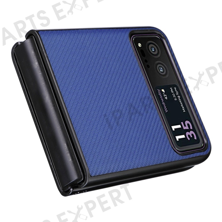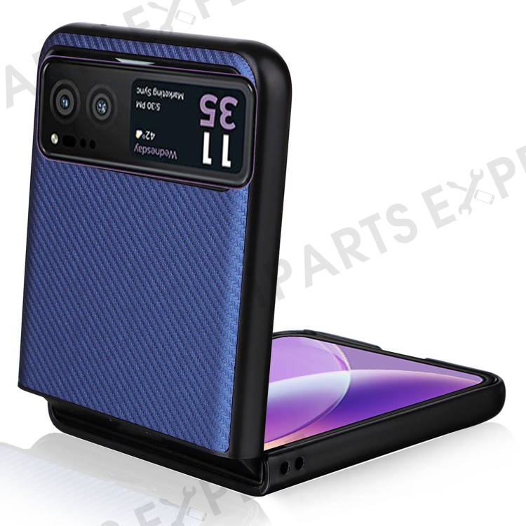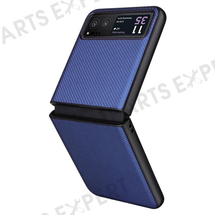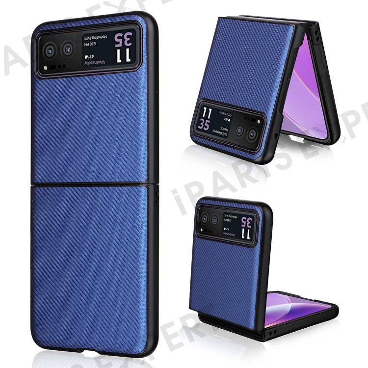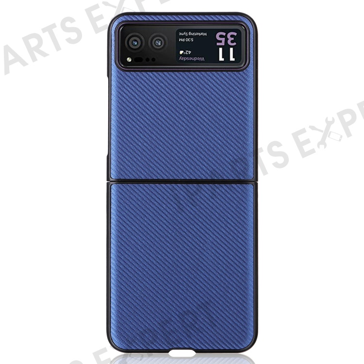 For Motorola Razr 40 5G PU Leather Coated PC Anti-Scratch Phone Case Carbon Fiber Texture Back Cover - Blue