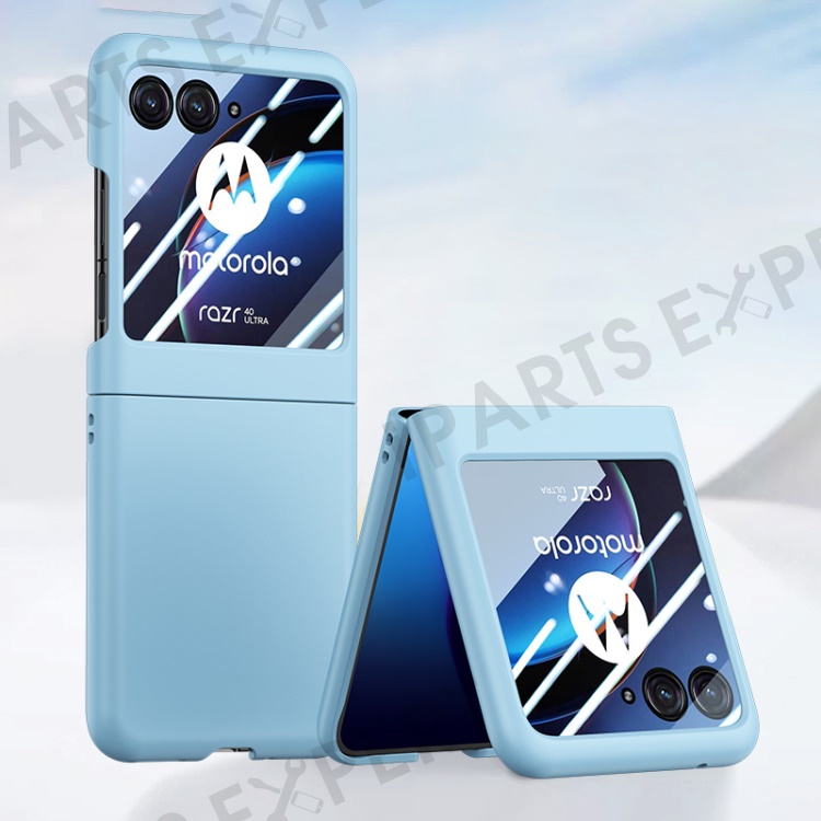 For Motorola Razr 40 Ultra 5G Phone Case Skin-touch PC Cover with Tempered Glass Rear Screen Protector - Baby Blue