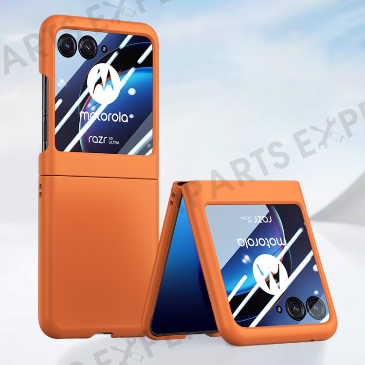 For Motorola Razr 40 Ultra 5G Phone Case Skin-touch PC Cover with Tempered Glass Rear Screen Protector - Orange