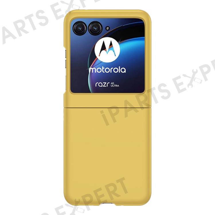 For Motorola Razr 40 Ultra 5G Phone Case Skin-touch PC Cover with Tempered Glass Rear Screen Protector - Yellow
