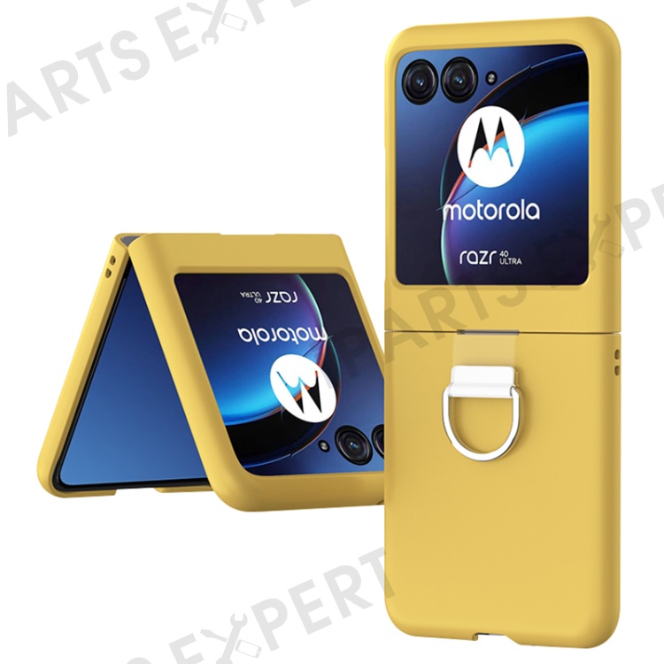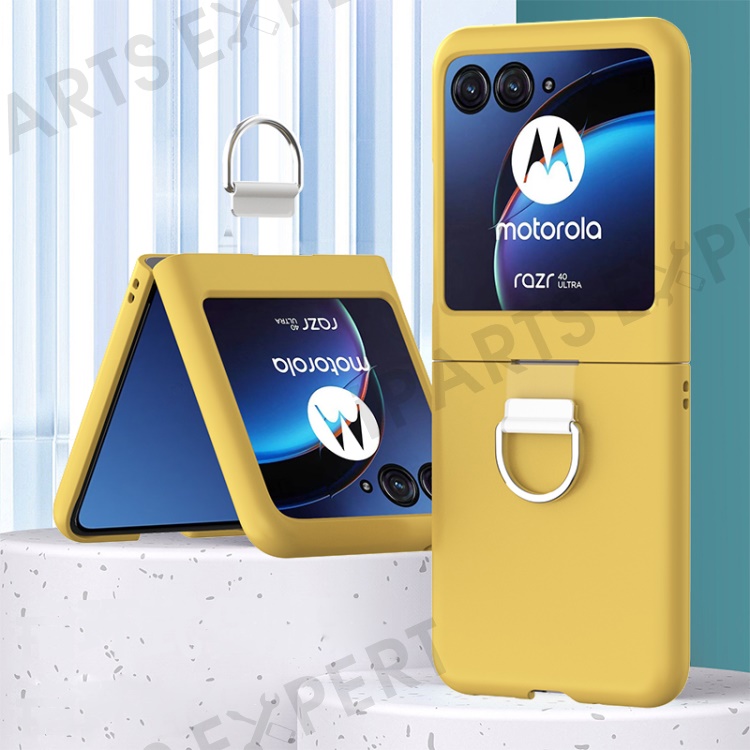 For Motorola Razr 40 Ultra 5G Skin-touch Phone Case Anti-Scratch Hard PC Cover with Metal Ring Holder - Yellow