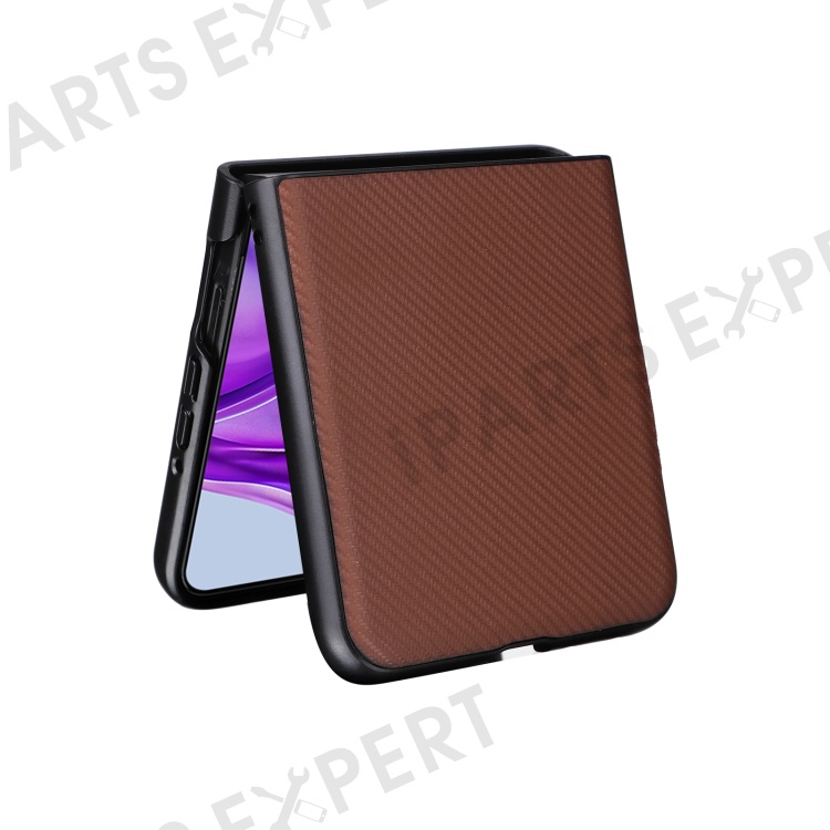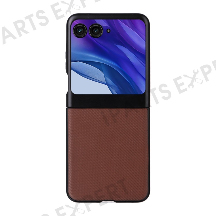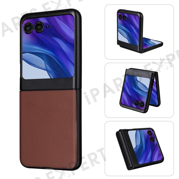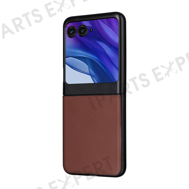 For Motorola Razr 60 / Razr 50 5G Case Carbon Fiber Texture Shockproof PU+PC Phone Cover - Brown