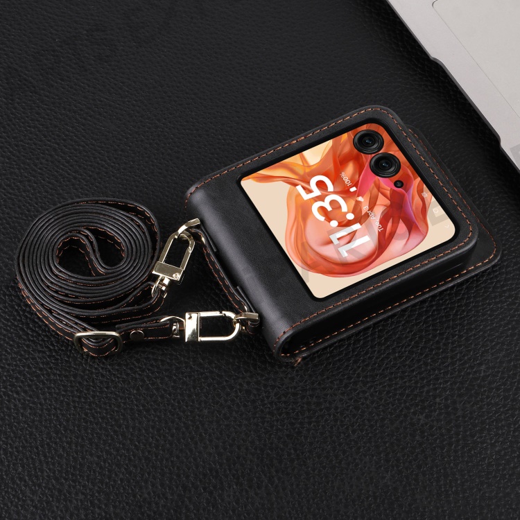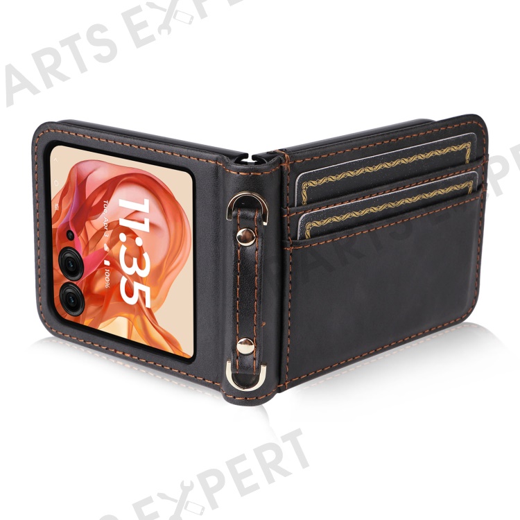 For Motorola Razr 2025 / Razr 2024 / Razr 60 / Razr 50 5G Case Card Slots Leather Phone Cover with Lanyard - Black
