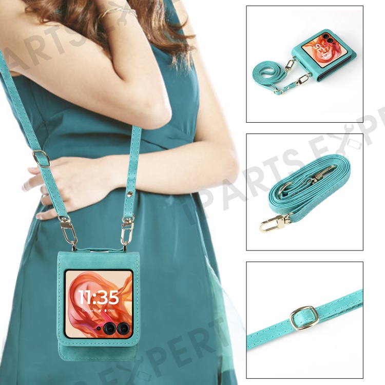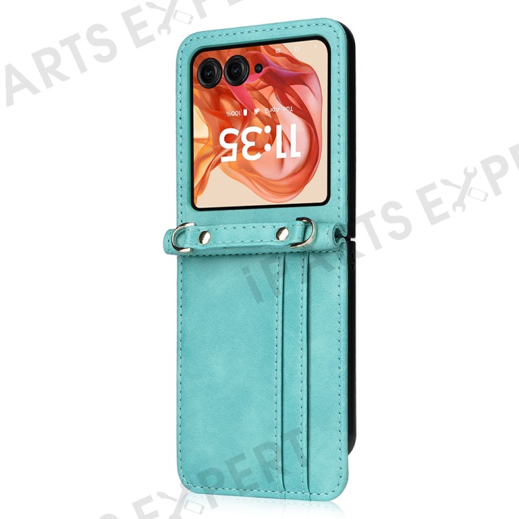 For Motorola Razr 2025 / Razr 2024 / Razr 60 / Razr 50 5G Case Card Slots Leather Phone Cover with Lanyard - Green