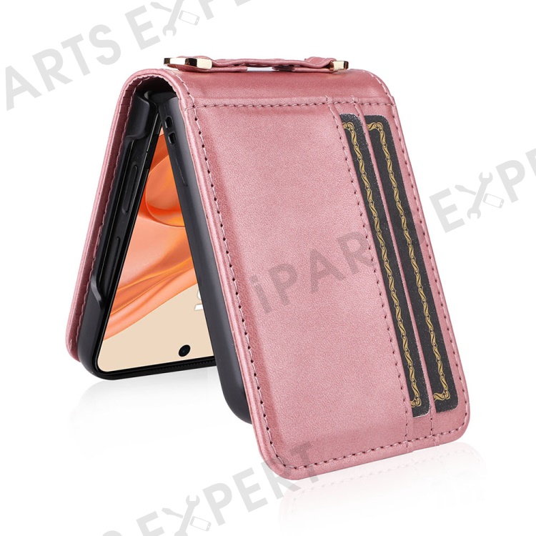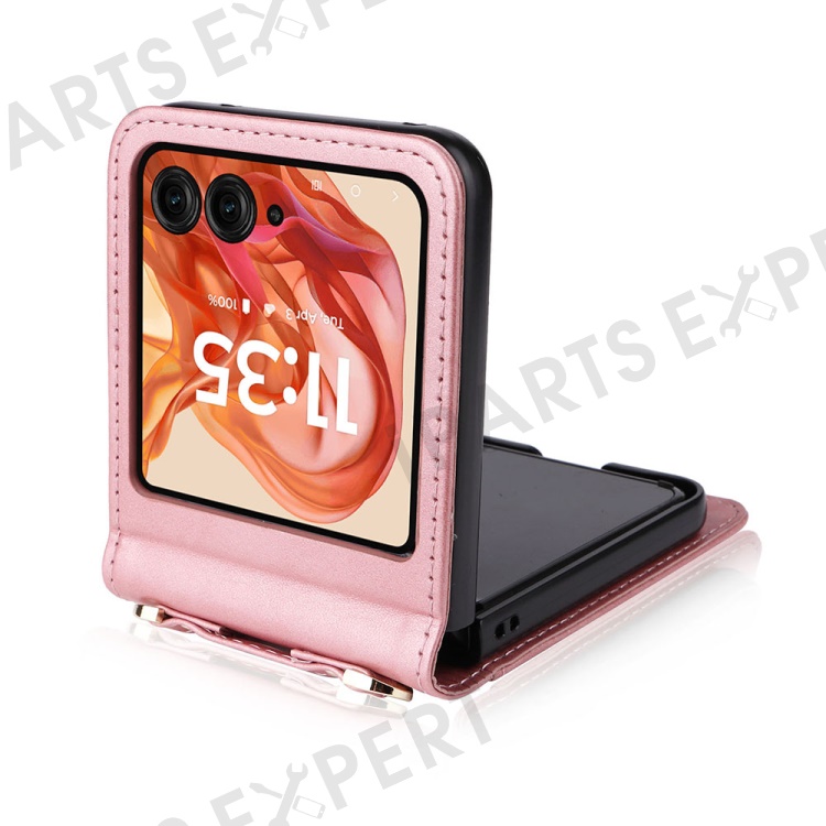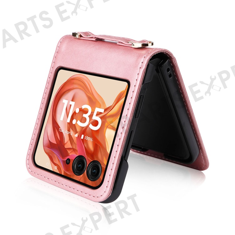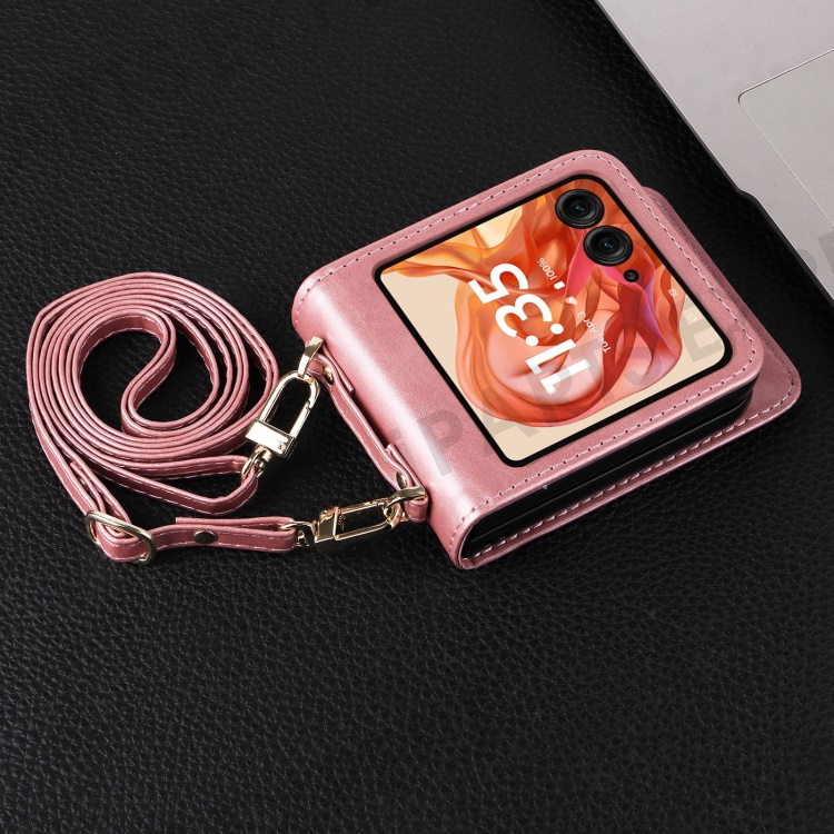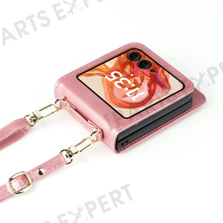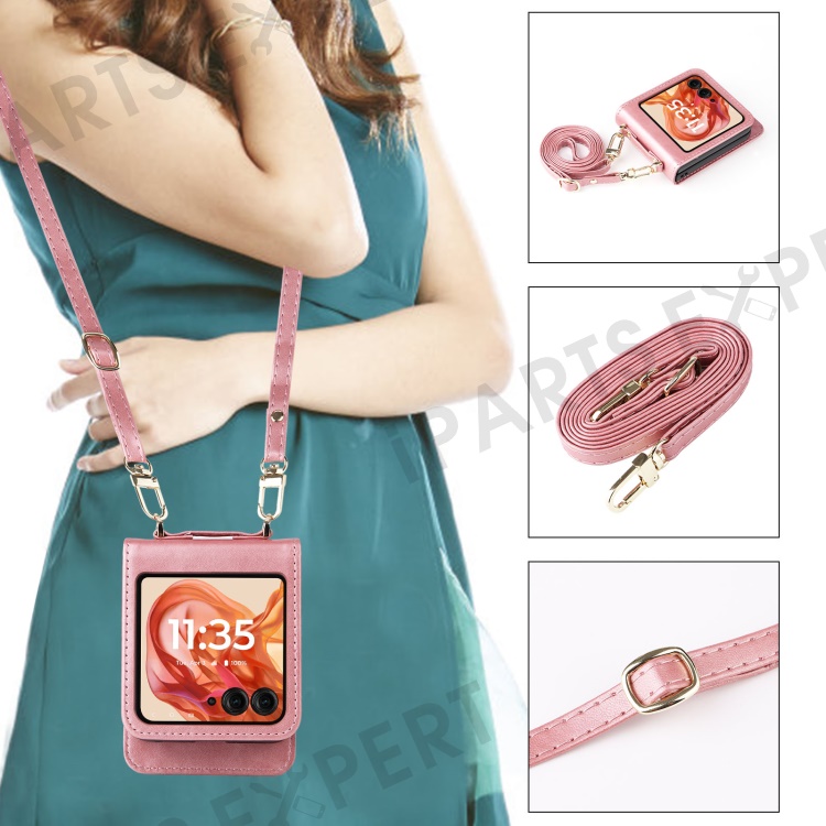 For Motorola Razr 2025 / Razr 2024 / Razr 60 / Razr 50 5G Case Card Slots Leather Phone Cover with Lanyard - Pink