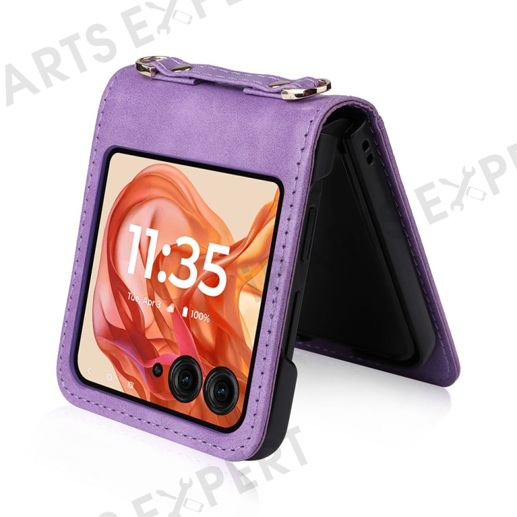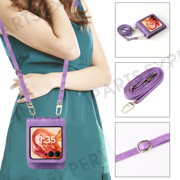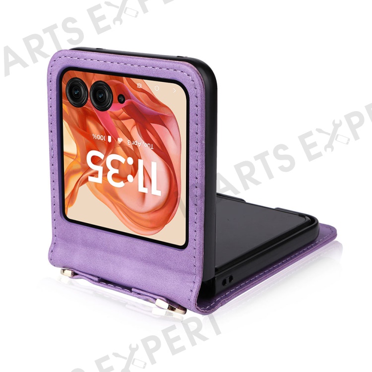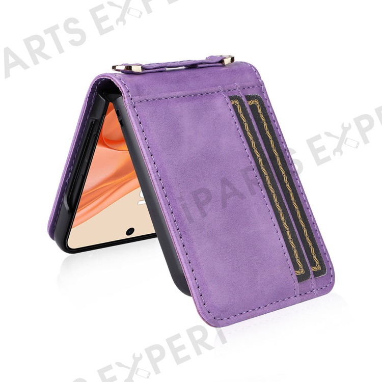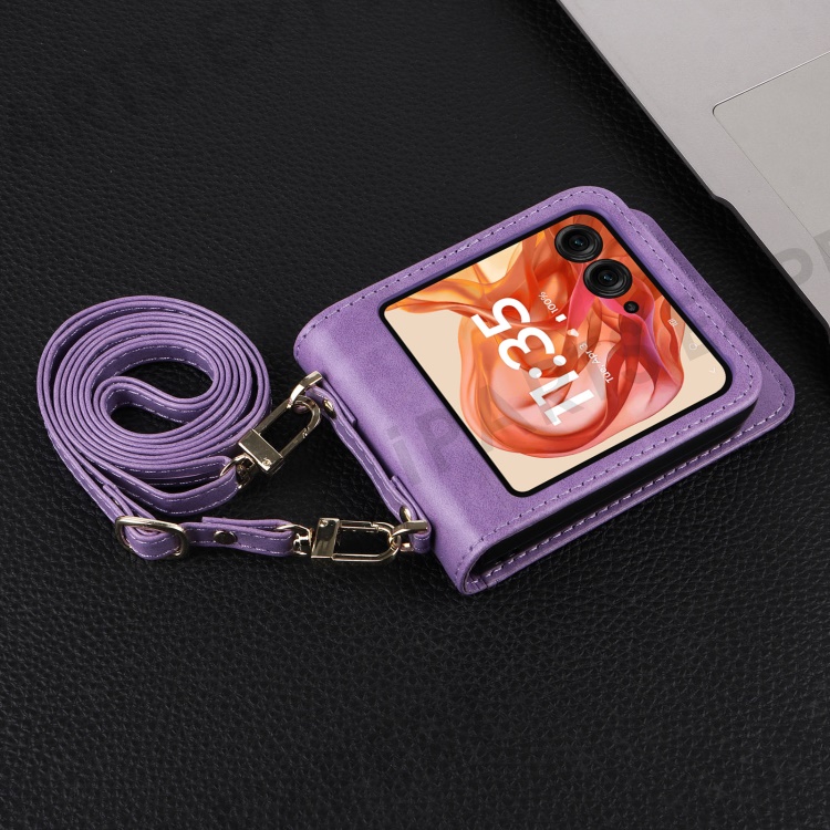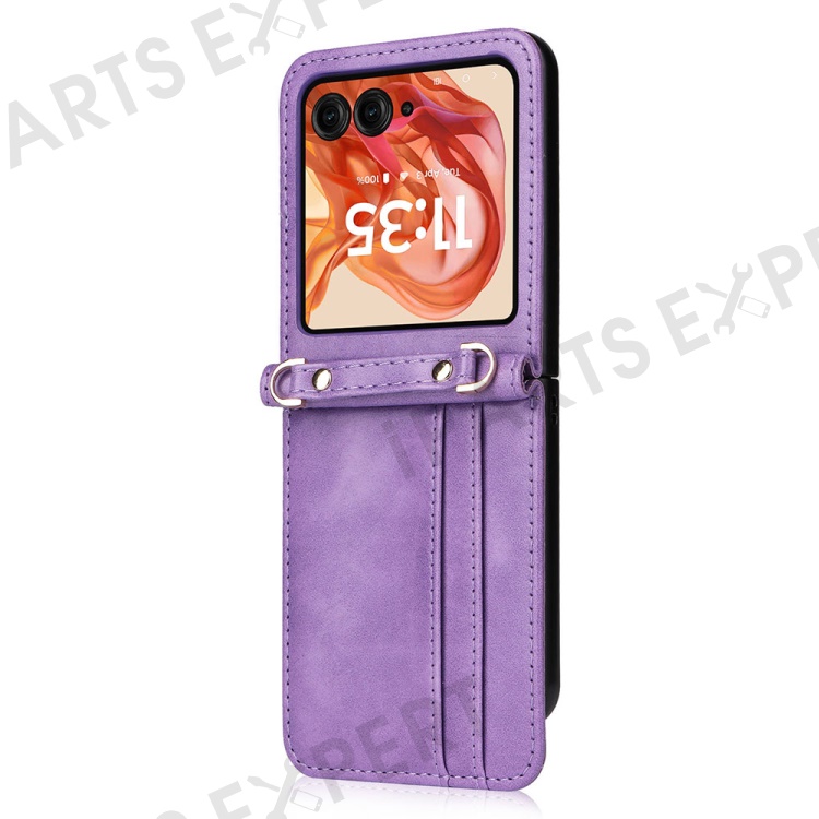 For Motorola Razr 2025 / Razr 2024 / Razr 60 / Razr 50 5G Case Card Slots Leather Phone Cover with Lanyard - Purple