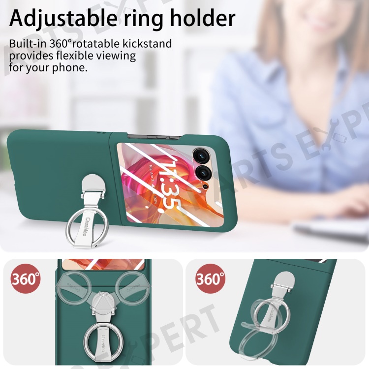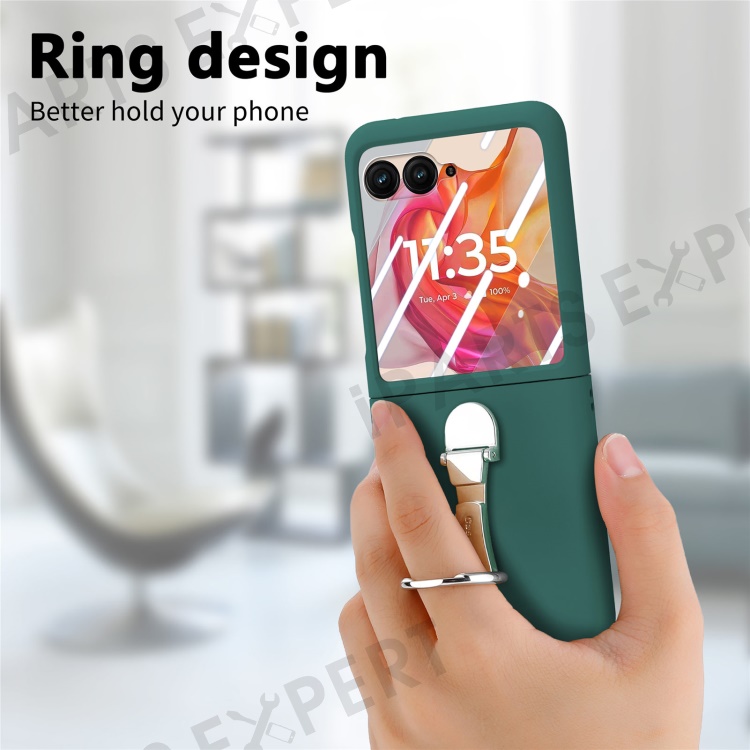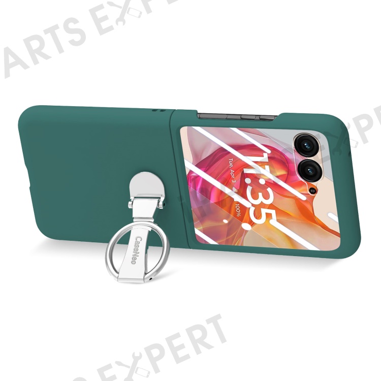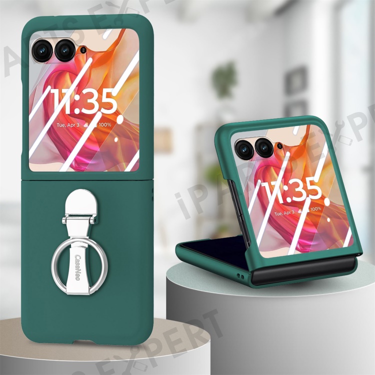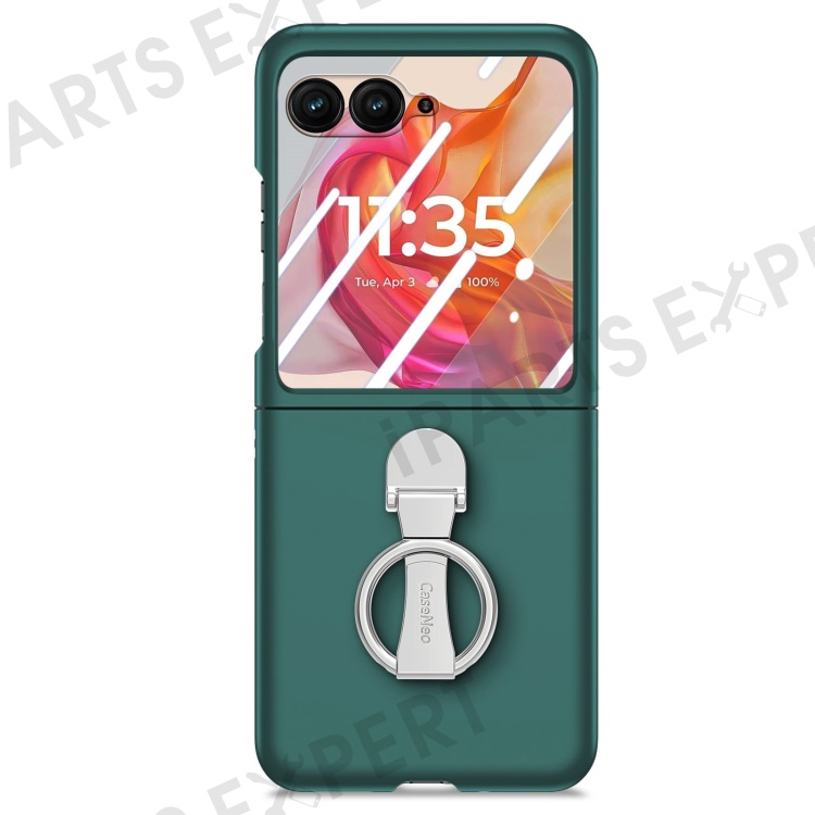 For Motorola Razr 50 Ultra 5G Case Ring Kickstand PC Phone Cover with Tempered Glass Rear Screen Film - Dark Green