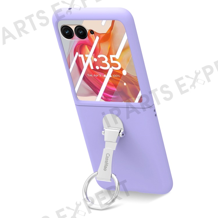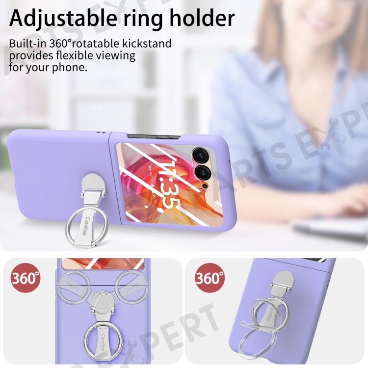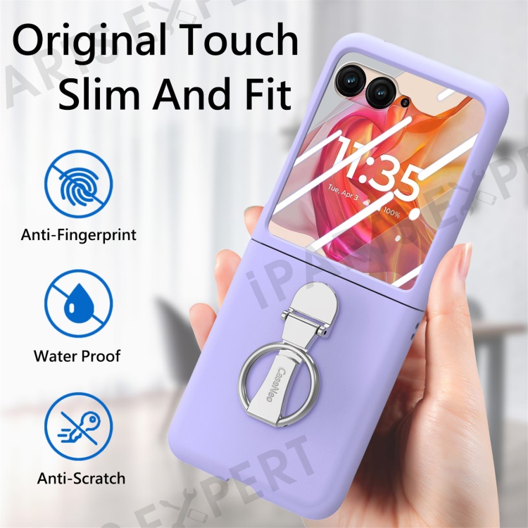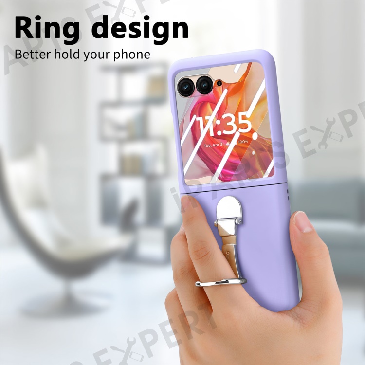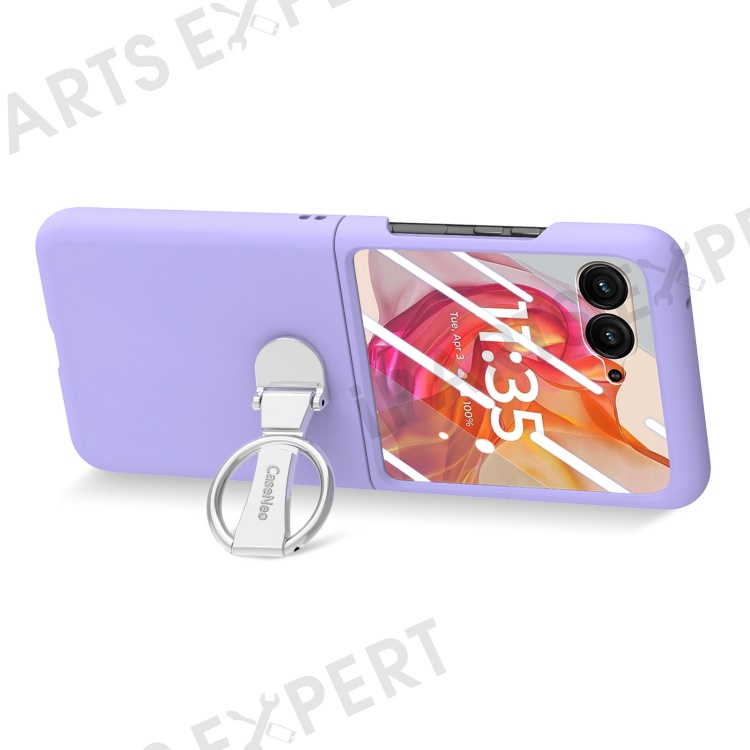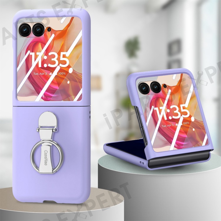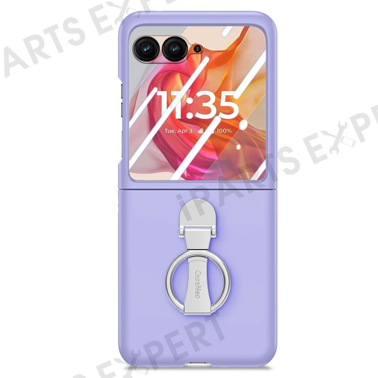 For Motorola Razr 50 Ultra 5G Case Ring Kickstand PC Phone Cover with Tempered Glass Rear Screen Film - Purple