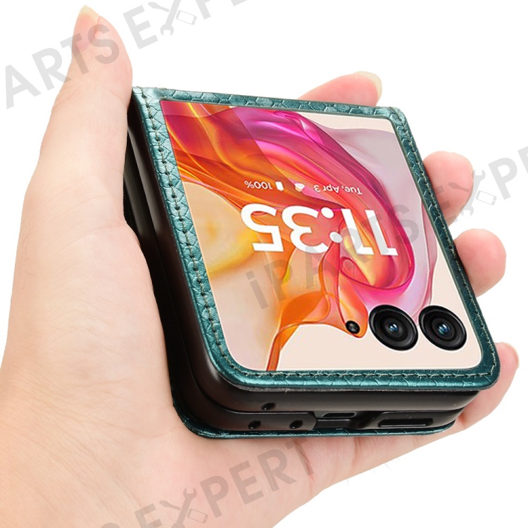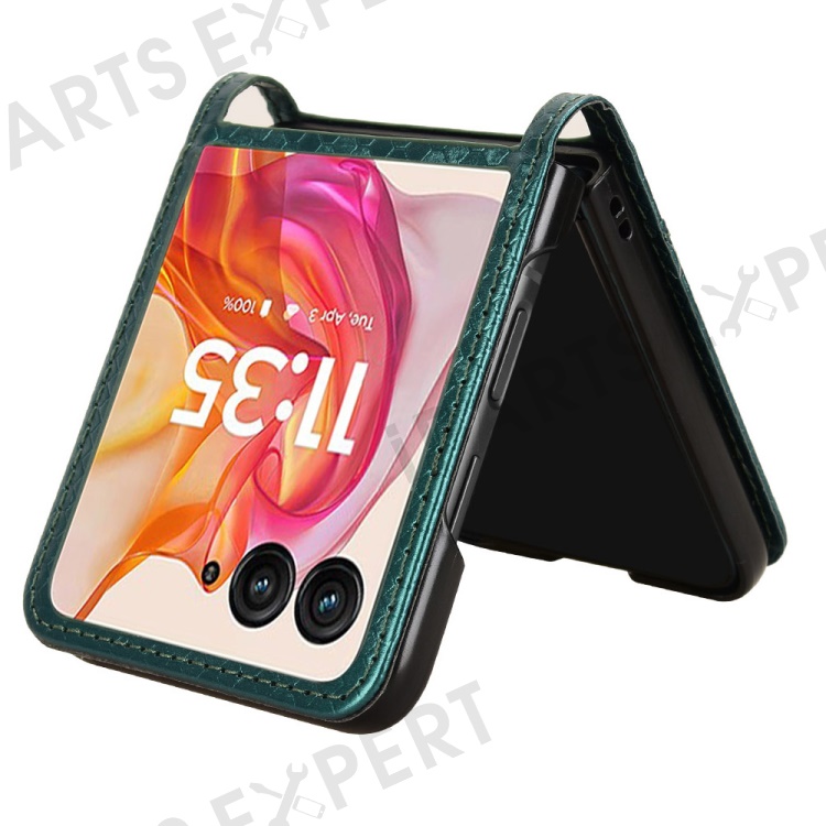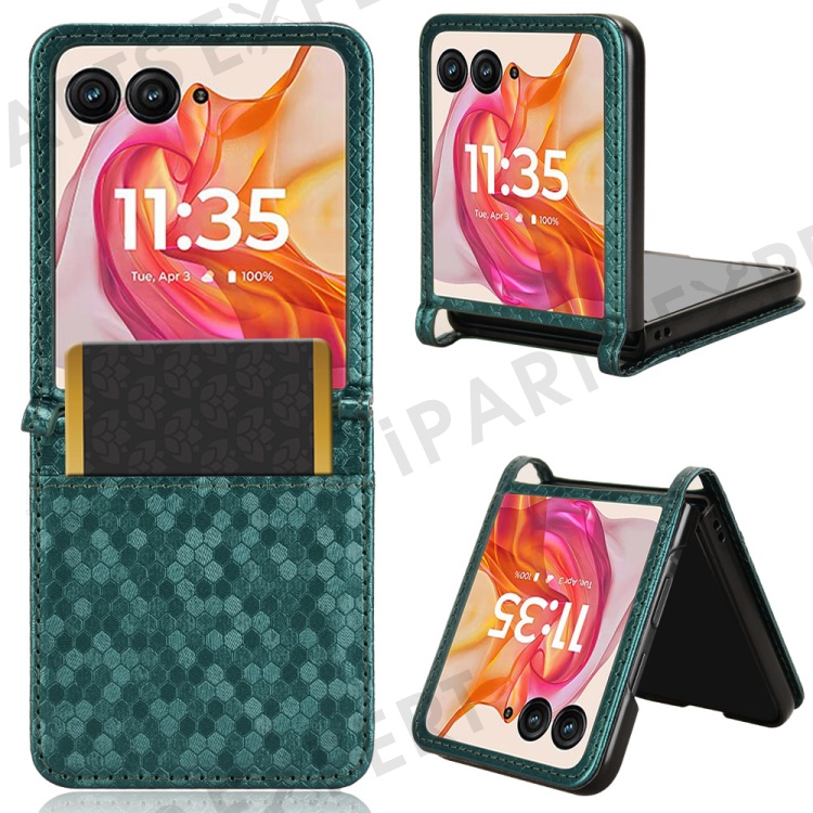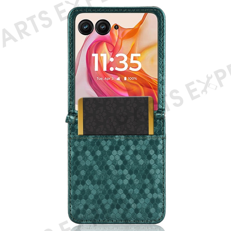 For Motorola Razr 50 Ultra 5G Phone Case with Card Holder Imprinted Dot Pattern Leather Phone Cover - Green