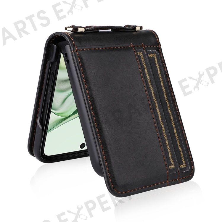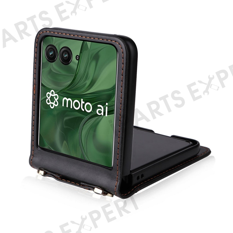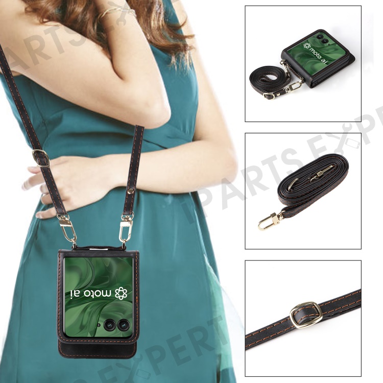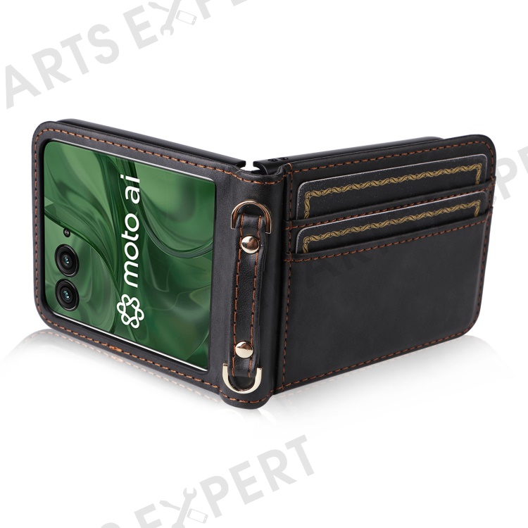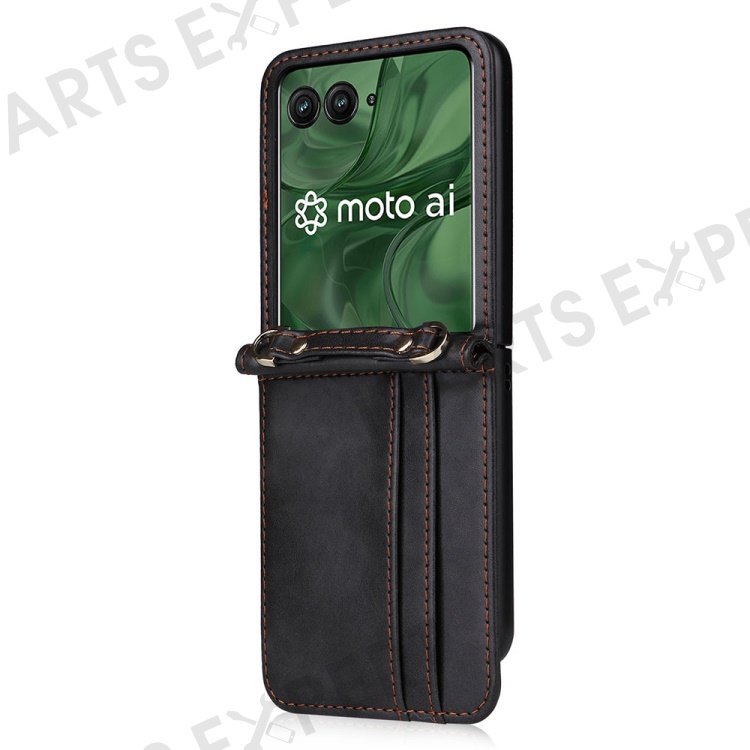For Motorola Razr+ 2025 / Razr+ 2024 / Razr 60 Pro 5G / Razr 50 Ultra 5G Case Card Slots Leather Phone Cover with Lanyard - Black