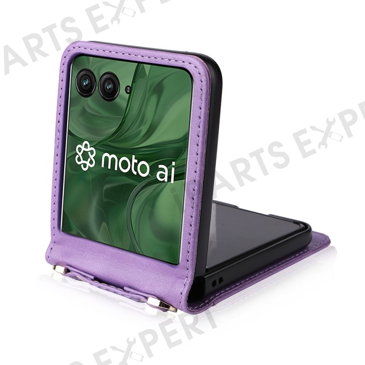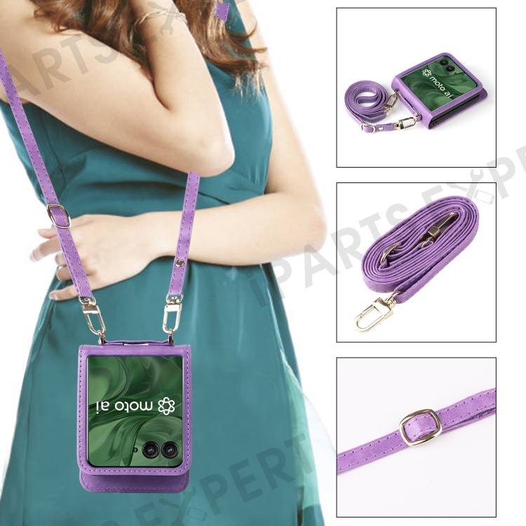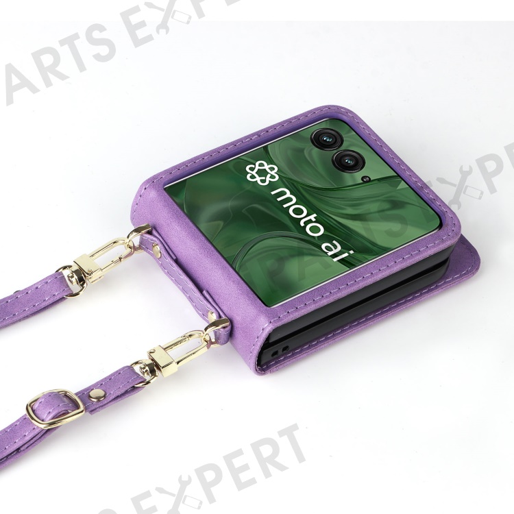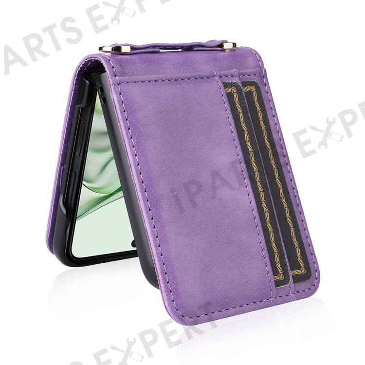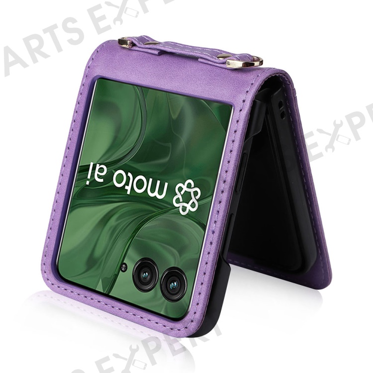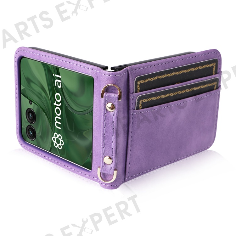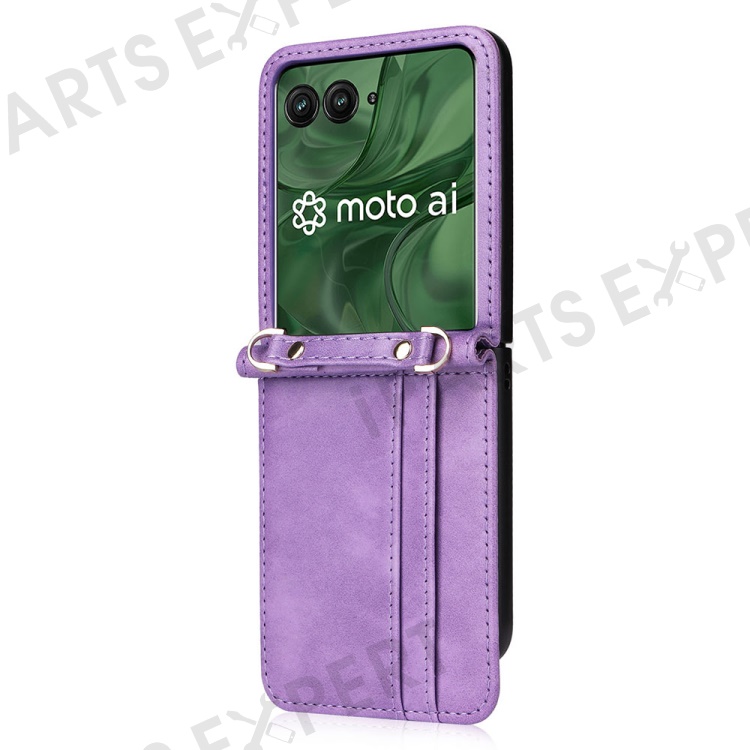 For Motorola Razr+ 2025 / Razr+ 2024 / Razr 60 Pro 5G / Razr 50 Ultra 5G Case Card Slots Leather Phone Cover with Lanyard - Purple