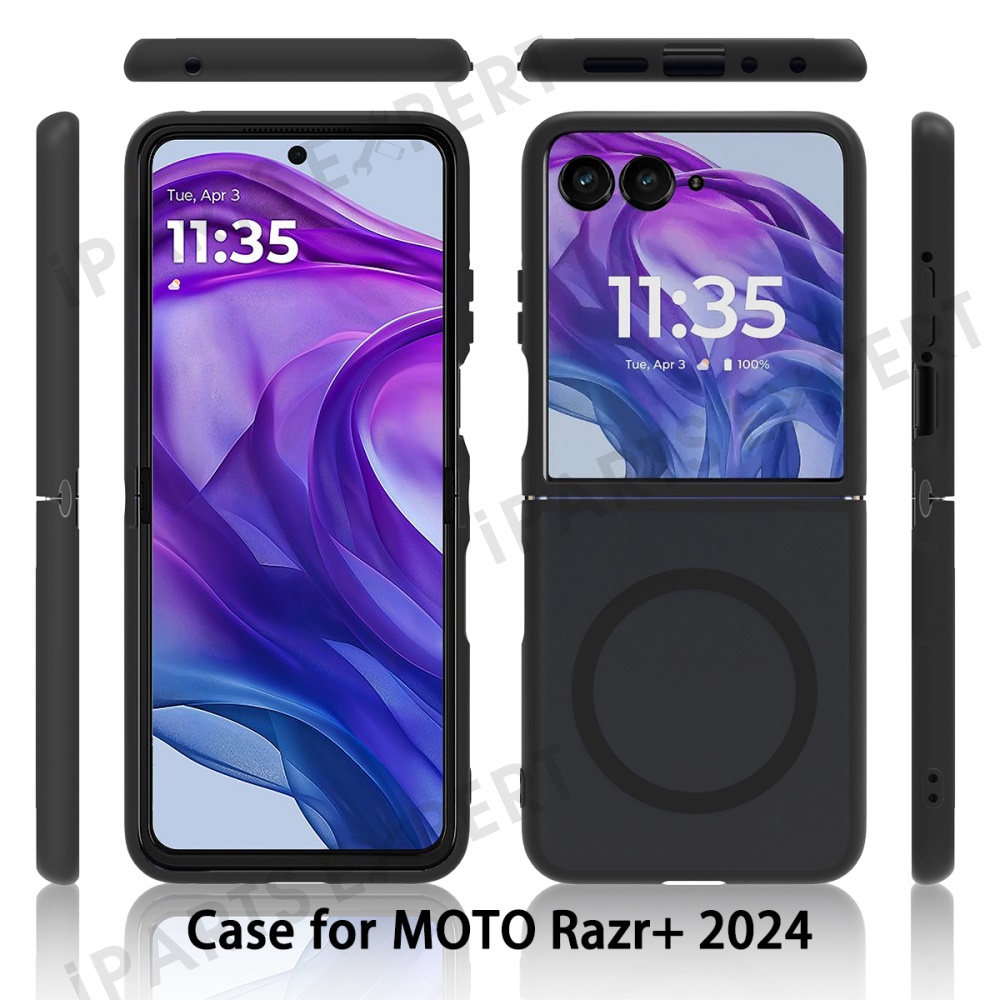 For Motorola Razr 50 Ultra 5G / Razr+ 2024 5G Case Magnetic Case TPU Frame Acrylic Back Phone Cover Skin Touch - Black