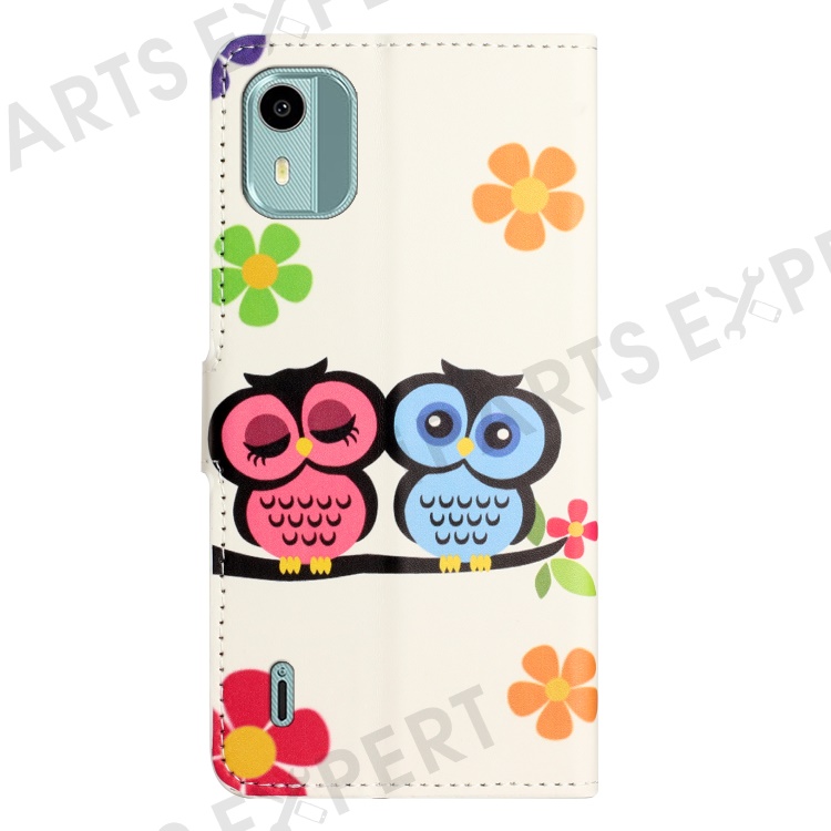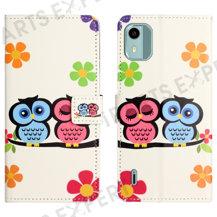 For Nokia C12 4G / C12 Pro / C12 Plus Pattern Printing Phone Leather Case Stand Wallet Cover - Couple Owls