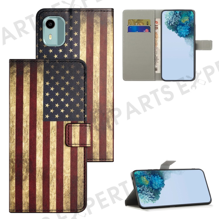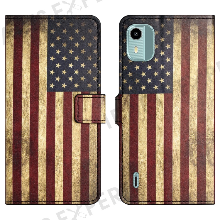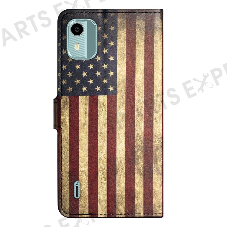 For Nokia C12 4G / C12 Pro / C12 Plus Pattern Printing Phone Leather Case Stand Wallet Cover - The American Flag
