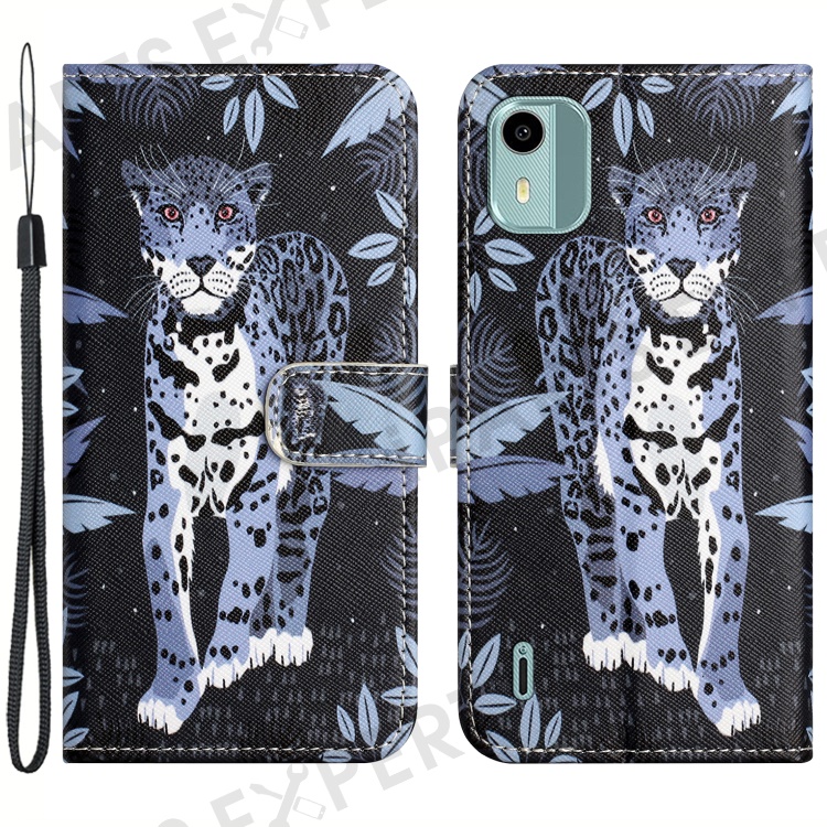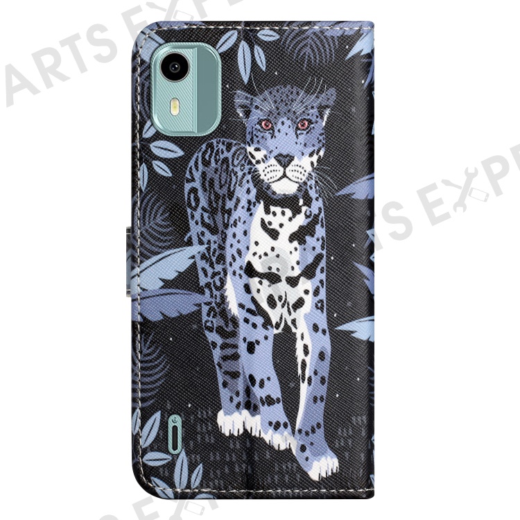 For Nokia C12 4G / C12 Pro / C12 Plus Stand Leather Wallet Case 3D Pattern Printing Phone Cover - Leopard