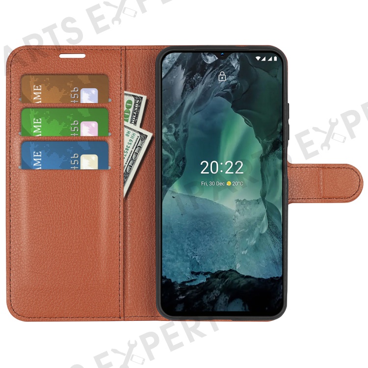 For Nokia G11/G21 PU Leather Stand Phone Cover Anti-drop Protection Litchi Texture Wallet Case - Brown