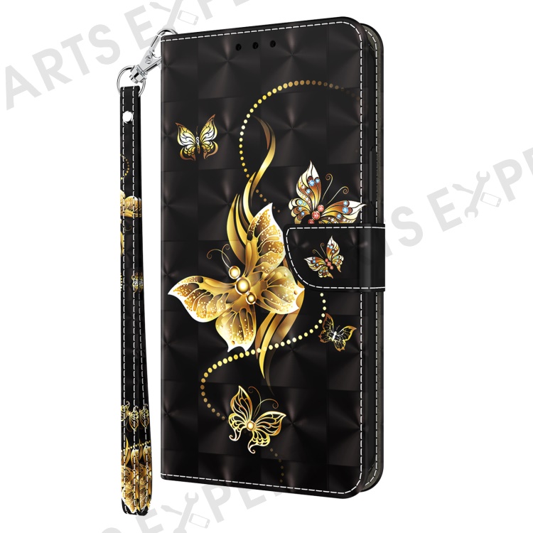 For Nokia G22 3D Pattern Printing PU Leather Case Wallet Stand Cell Phone Cover with Strap - Golden Butterfly