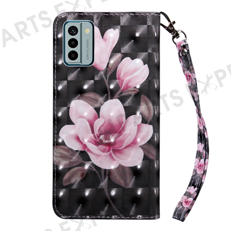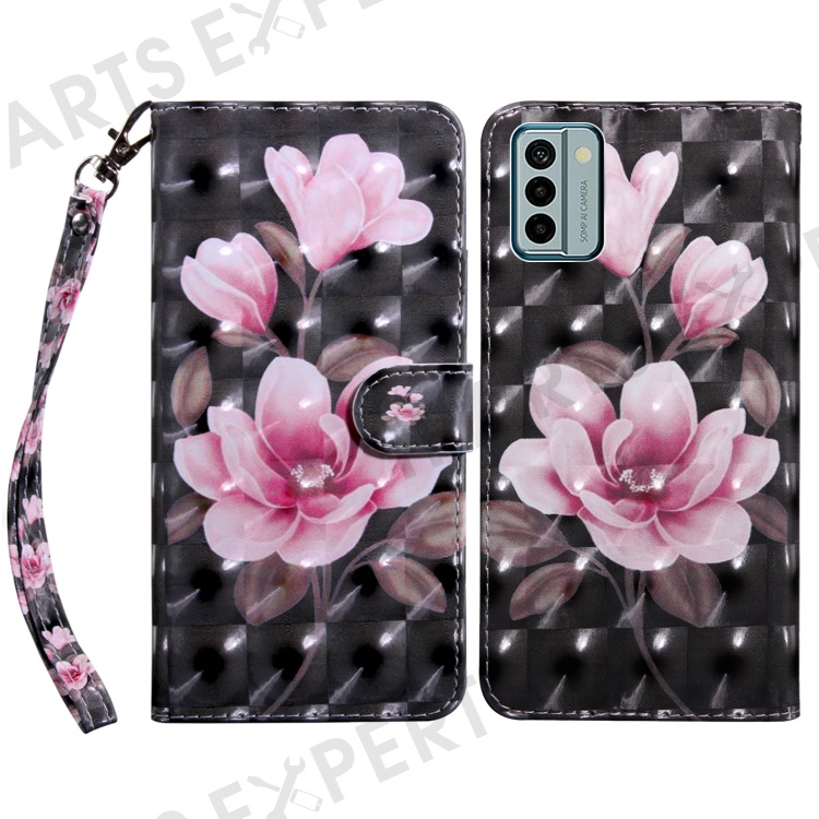For Nokia G22 3D Pattern Printing PU Leather Case Wallet Stand Cell Phone Cover with Strap - Pink Flower