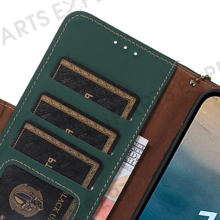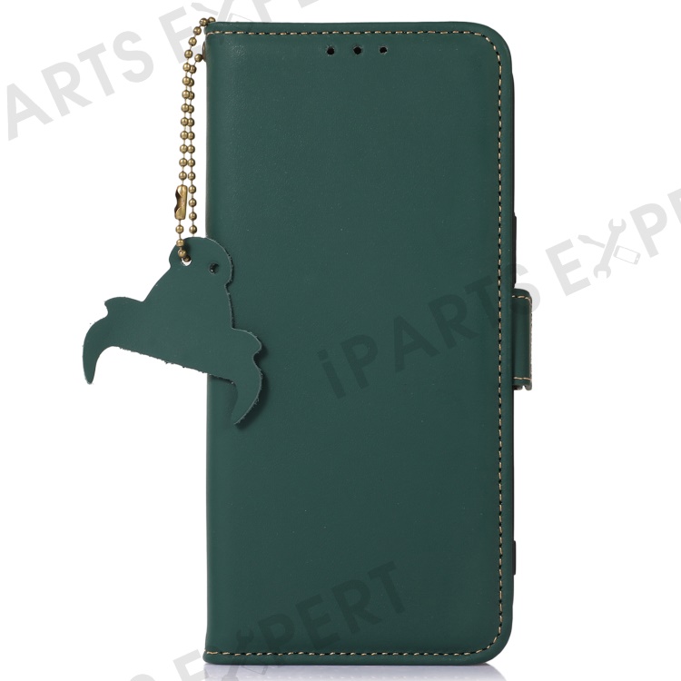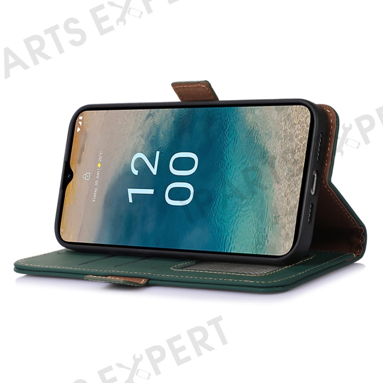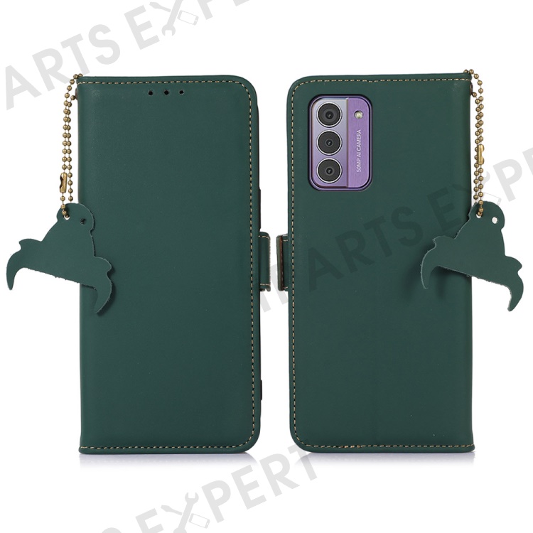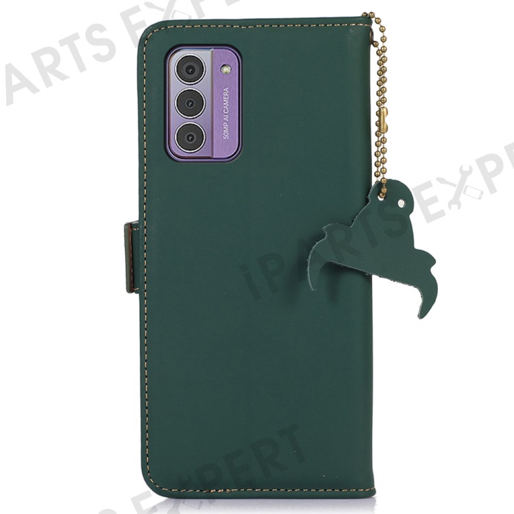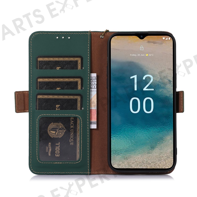 For Nokia G42 RFID Blocking Wallet Stand Phone Case Silky Feeling Genuine Cow Leather Protective Cover - Green