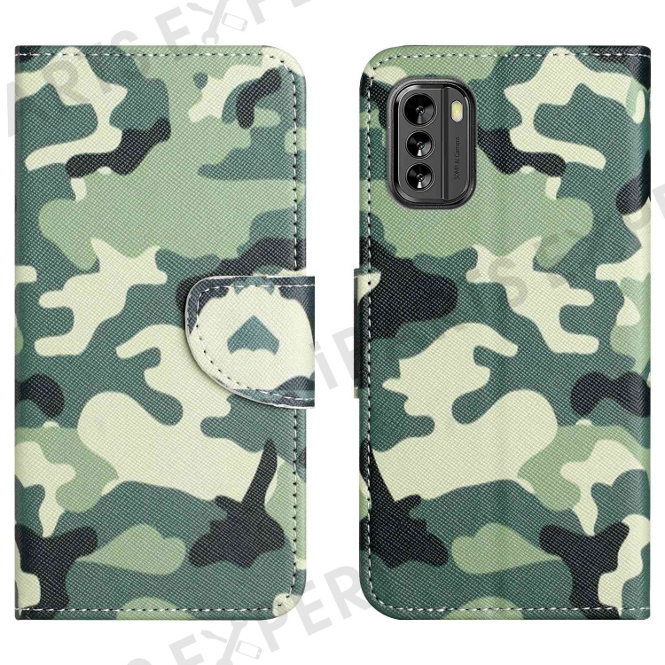 For Nokia G60 5G Cross Texture PU Leather Flip Stand Wallet Case Pattern Printing Full Protection Cover - Camouflage