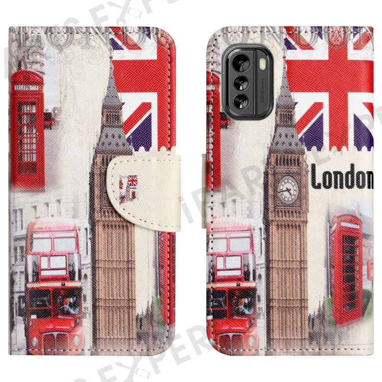 For Nokia G60 5G Cross Texture PU Leather Flip Stand Wallet Case Pattern Printing Full Protection Cover - London Big Ben