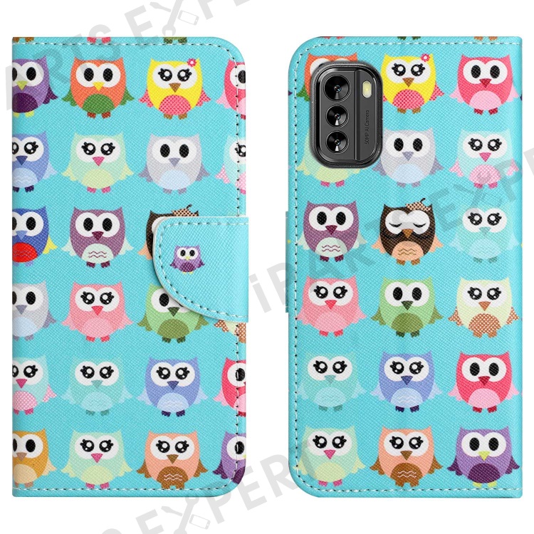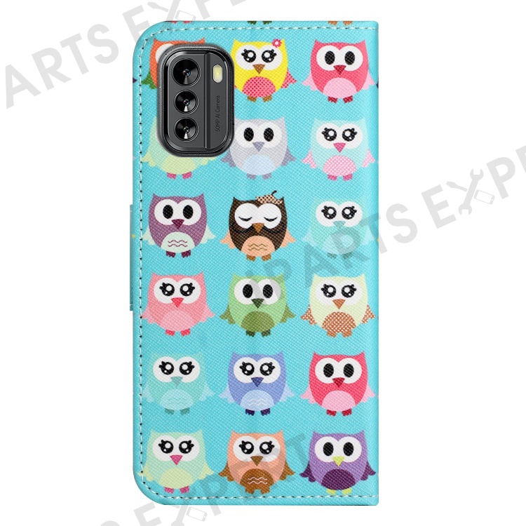 For Nokia G60 5G Cross Texture PU Leather Flip Stand Wallet Case Pattern Printing Full Protection Cover - Owls