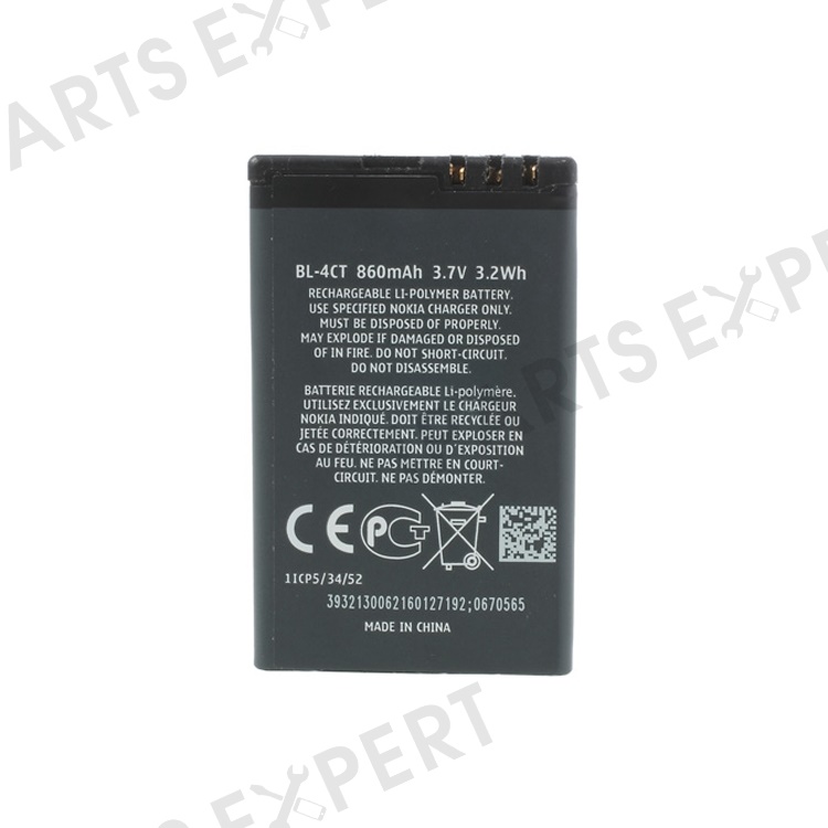 For Nokia X3 / 7230 / 5310 / 5630 / 2720f / 6600f / 6700s / 7210s / 7310s 3.7V 860mAh Rechargeable Li-ion Polymer Battery Assembly Parts (Encode: BL-4CT) (without Logo)