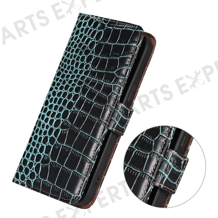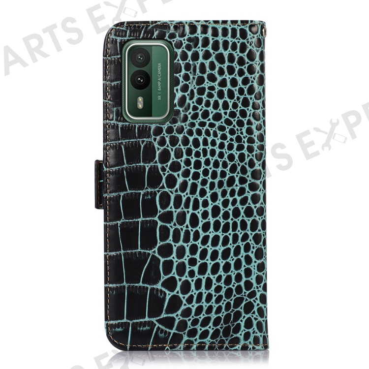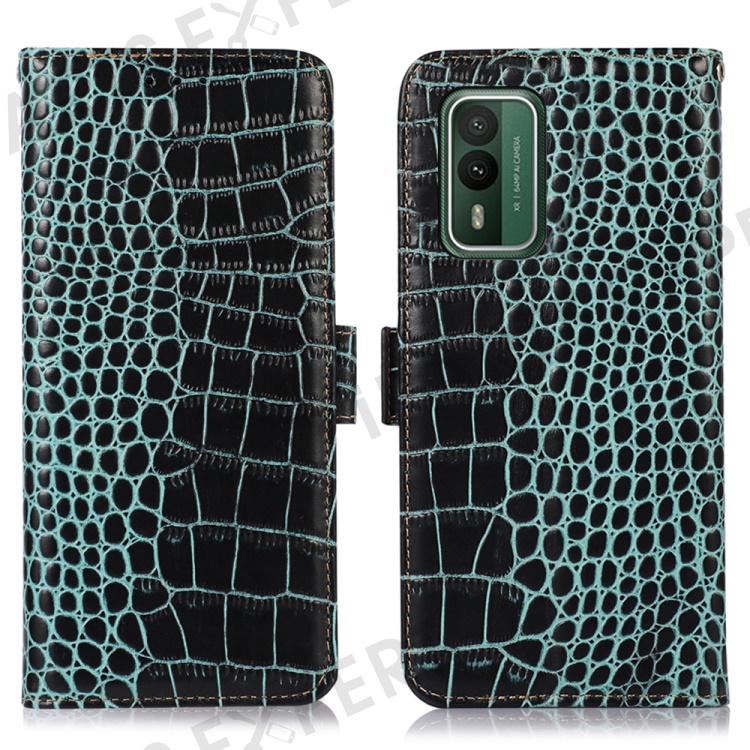 For Nokia XR21 Wallet Phone Case Genuine Cow Leather Crocodile Texture RFID Blocking Stand Cover - Green