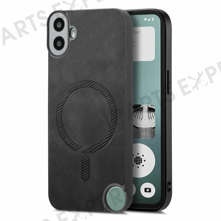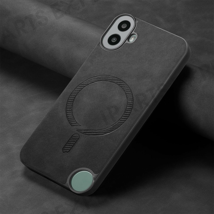 For Nothing CMF Phone 1 Leather Back Magnetic Case Skin-Touch Phone Cover - Black