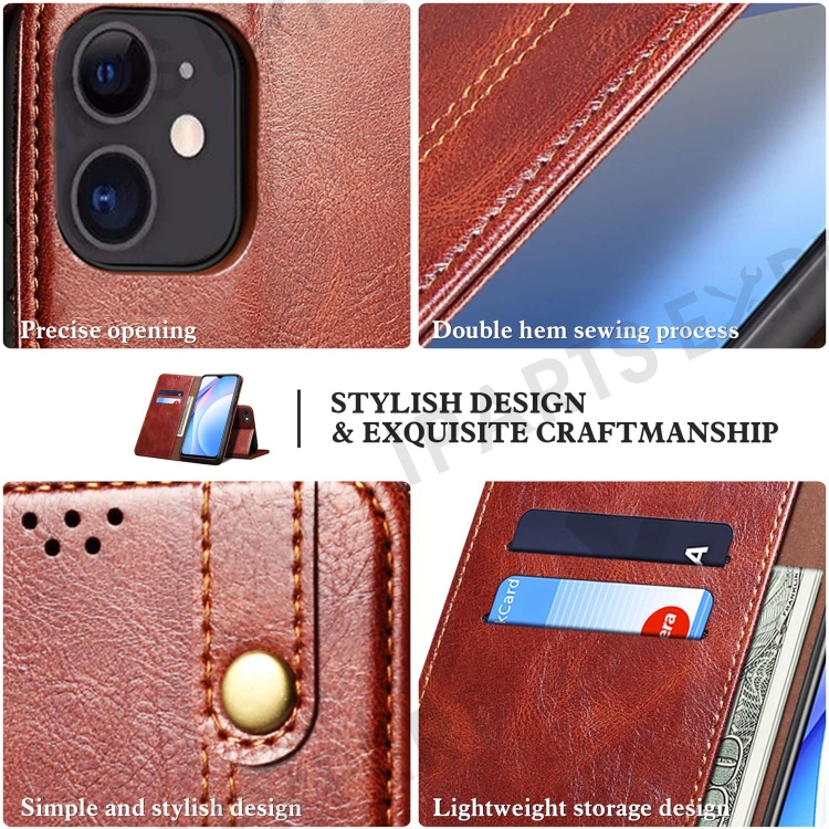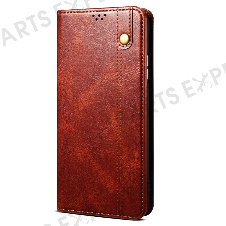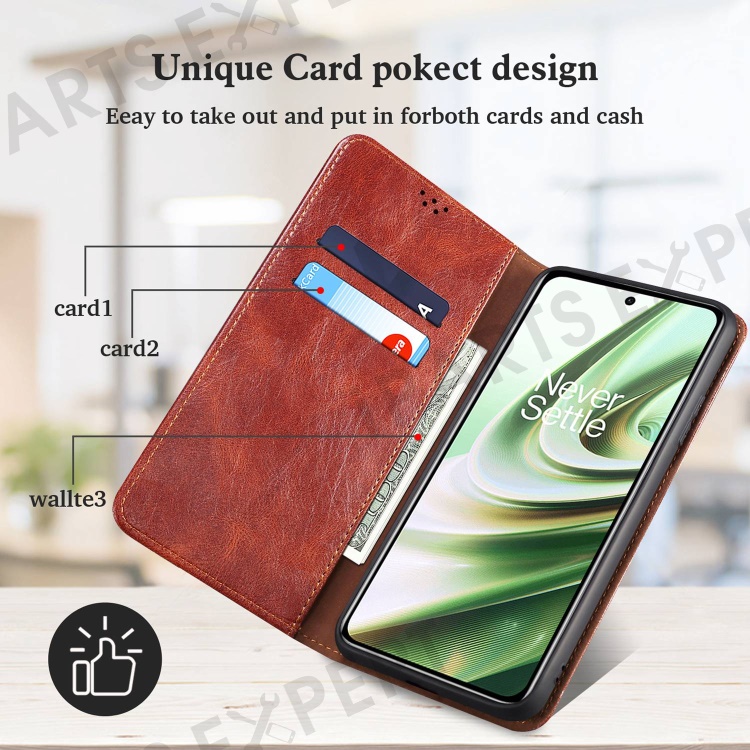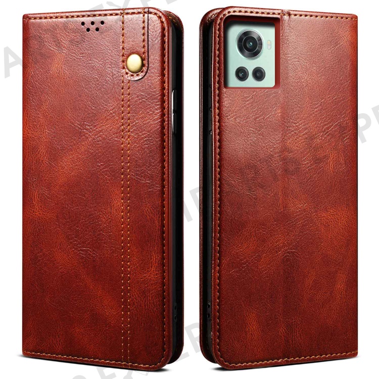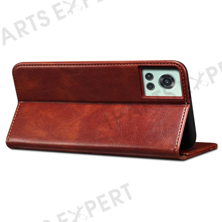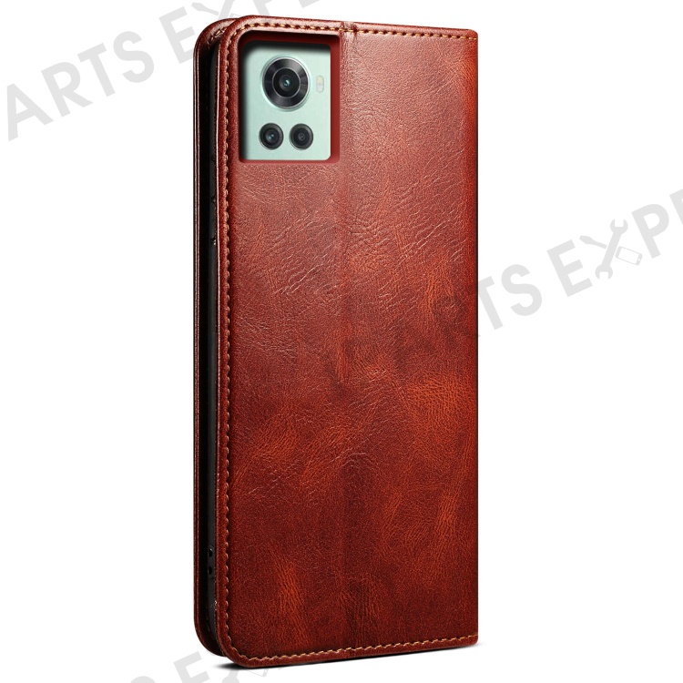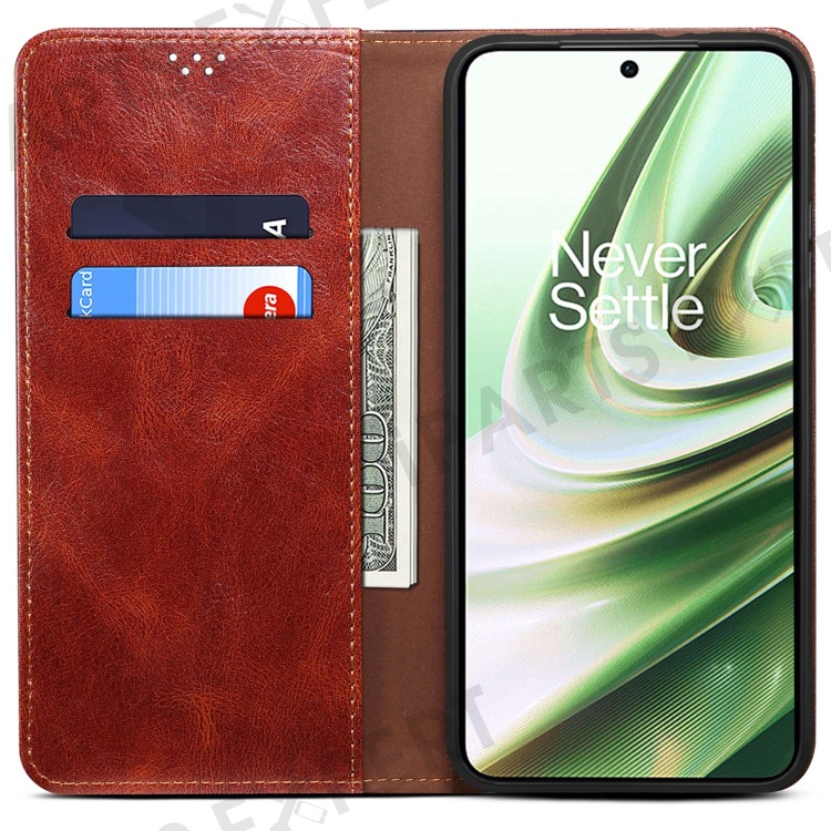 For OnePlus 10R 5G/Ace 5G Shockproof Wallet Style Phone Cover Waxy Crazy Horse Texture Magnetic Auto-absorbed Adjustable Stand Leather Case - Brown