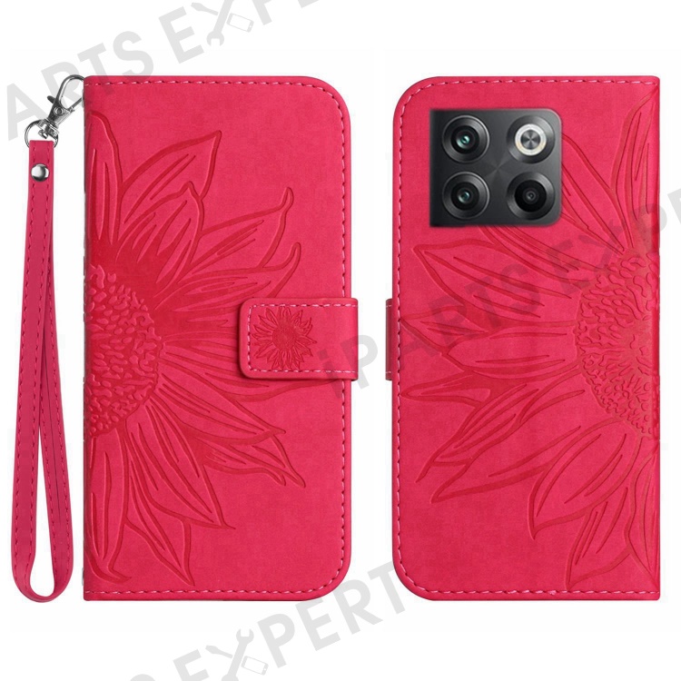 For OnePlus 10T 5G / Ace Pro 5G HT04 Sunflower Imprinted PU Leather Wallet Cover Skin-Touch Flip Stand Phone Drop-proof Case with Hand Strap - Rose