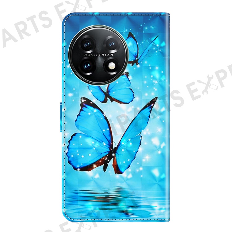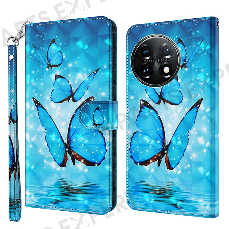 For OnePlus 11 5G PU Leather 3D Pattern Printing Phone Case Flip Wallet Stand Protective Cover - Blue Butterflies
