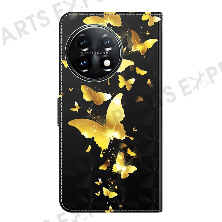 For OnePlus 11 5G PU Leather 3D Pattern Printing Phone Case Flip Wallet Stand Protective Cover - Golden Butterflies