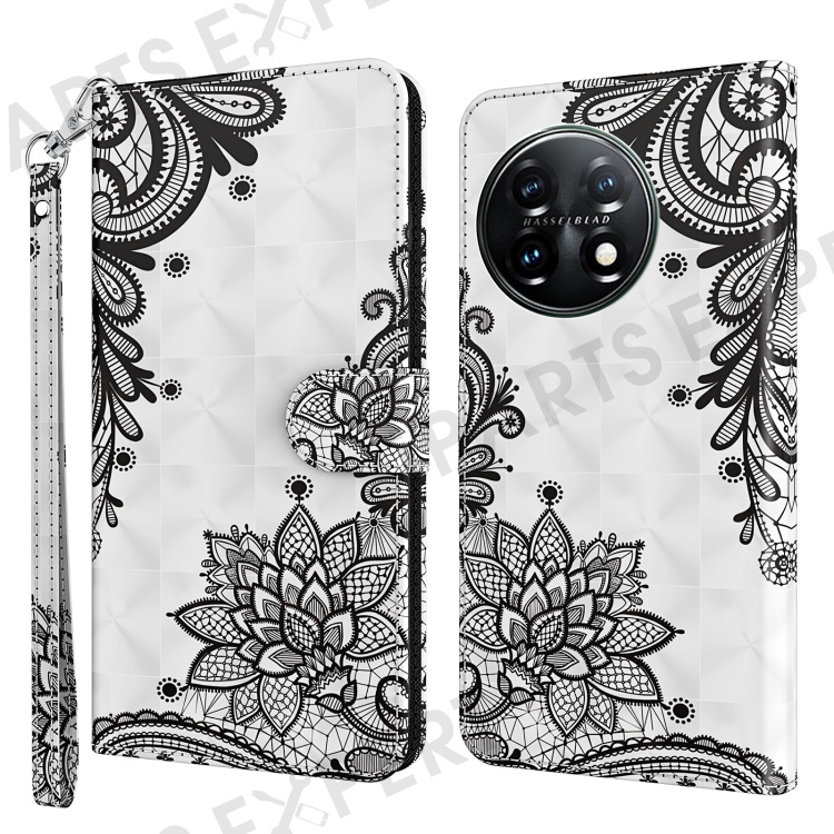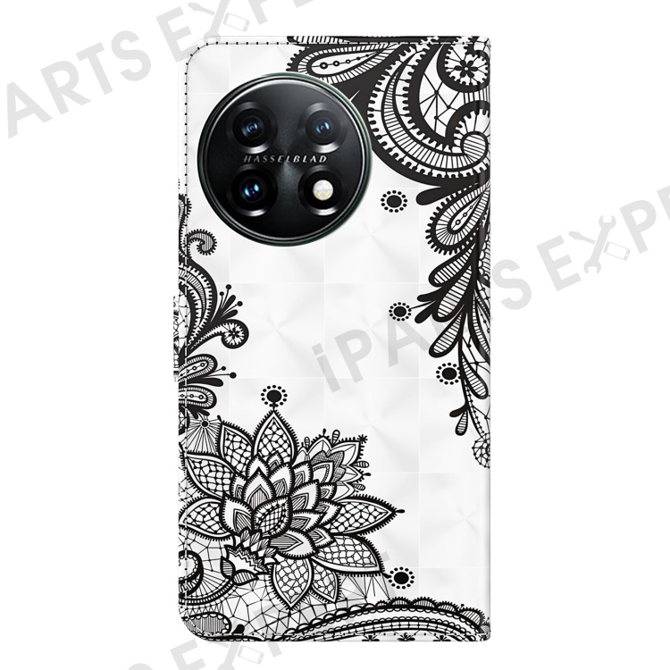 For OnePlus 11 5G PU Leather 3D Pattern Printing Phone Case Flip Wallet Stand Protective Cover - Lace Flower