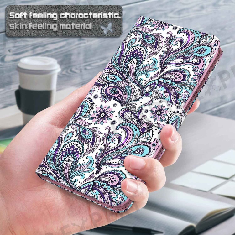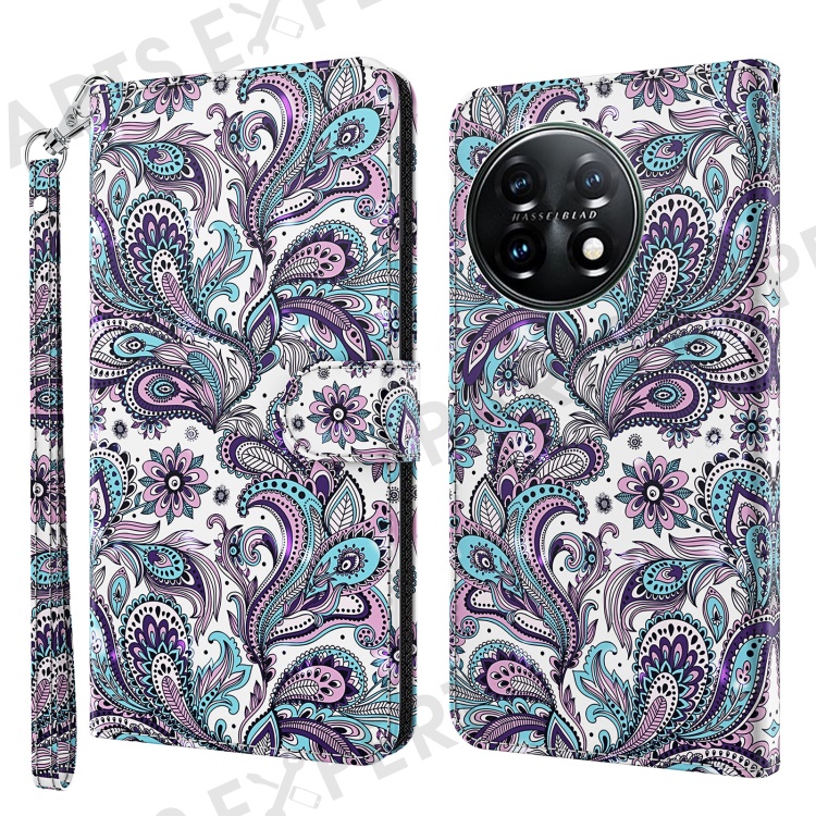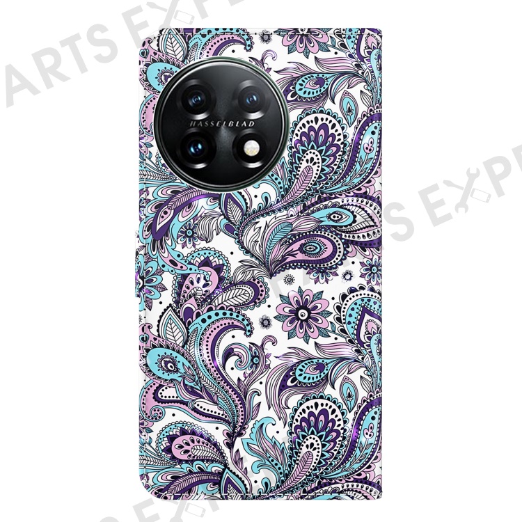For OnePlus 11 5G PU Leather 3D Pattern Printing Phone Case Flip Wallet Stand Protective Cover - Purple Impatiens