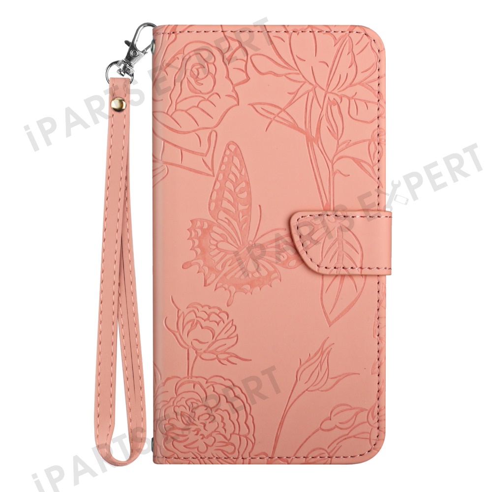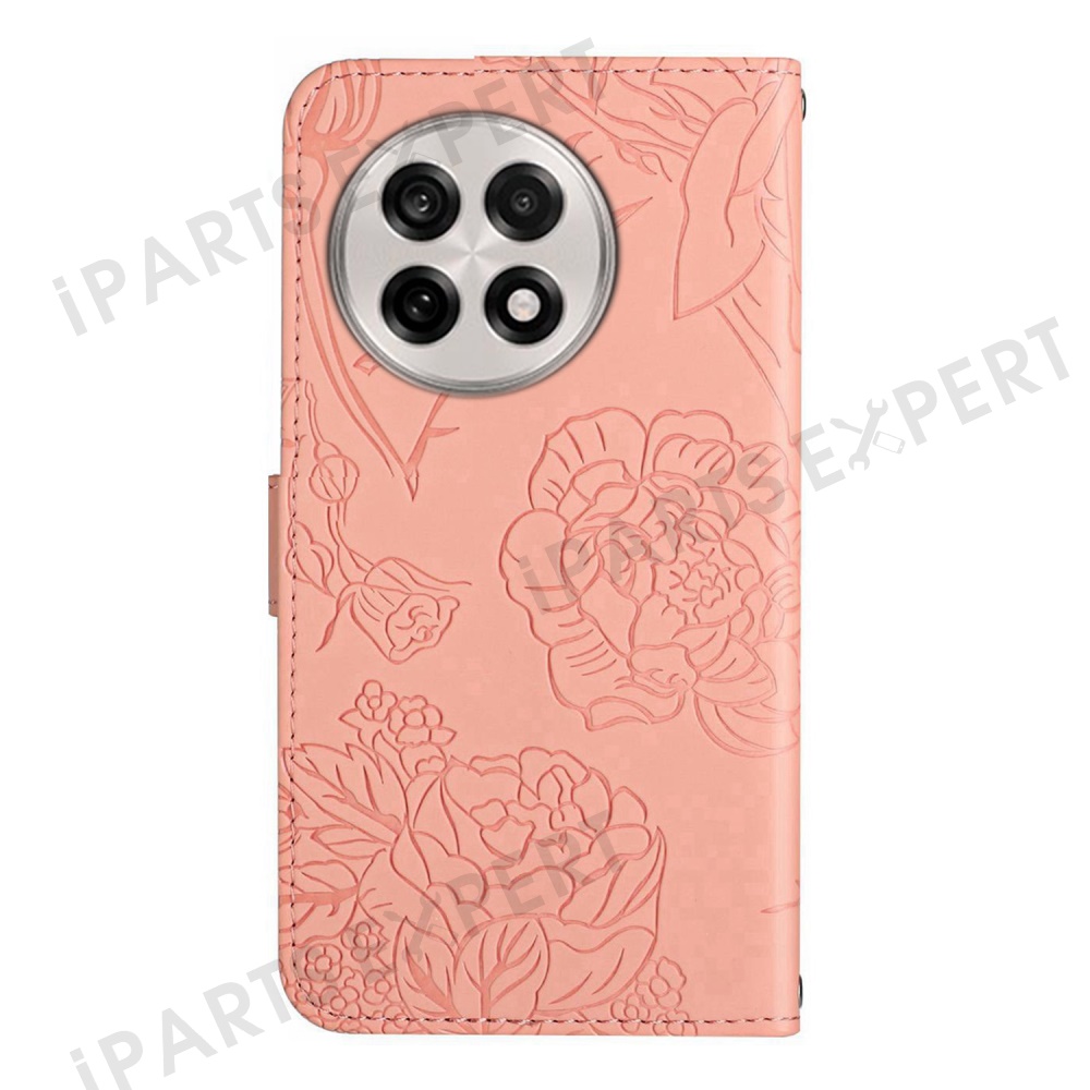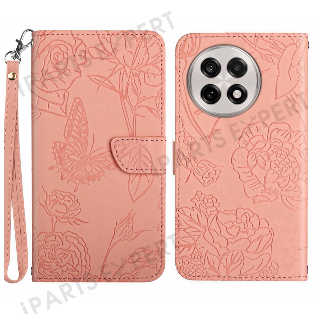 For OnePlus 13 Case Butterfly Flower Imprinted Leather Phone Cover with Strap - Pink