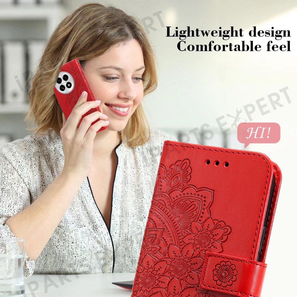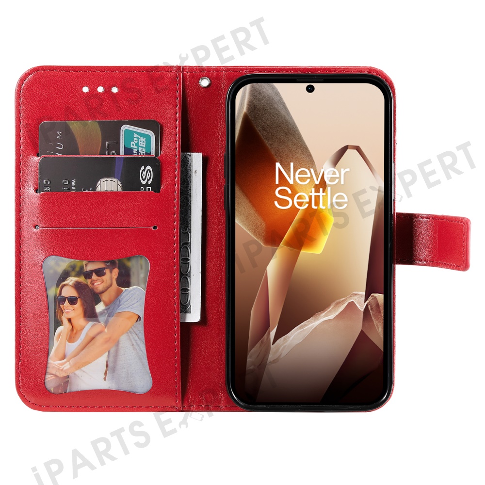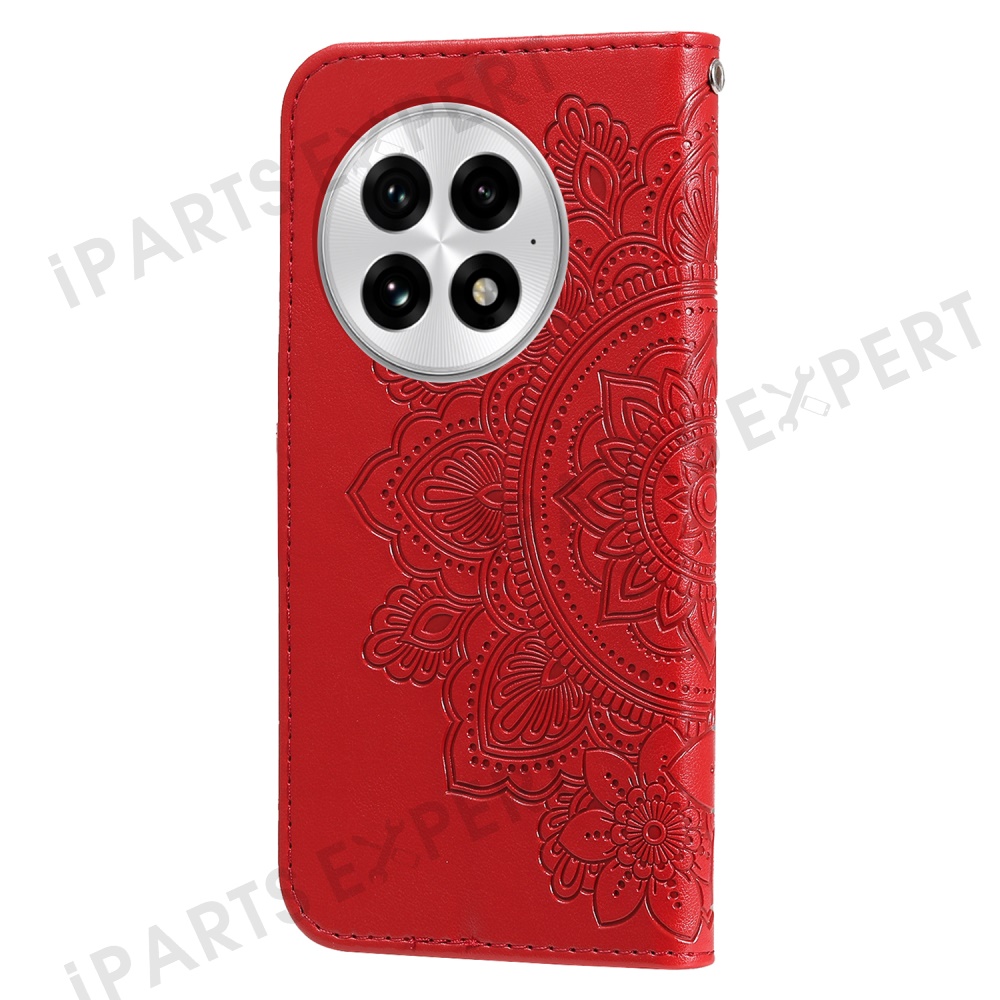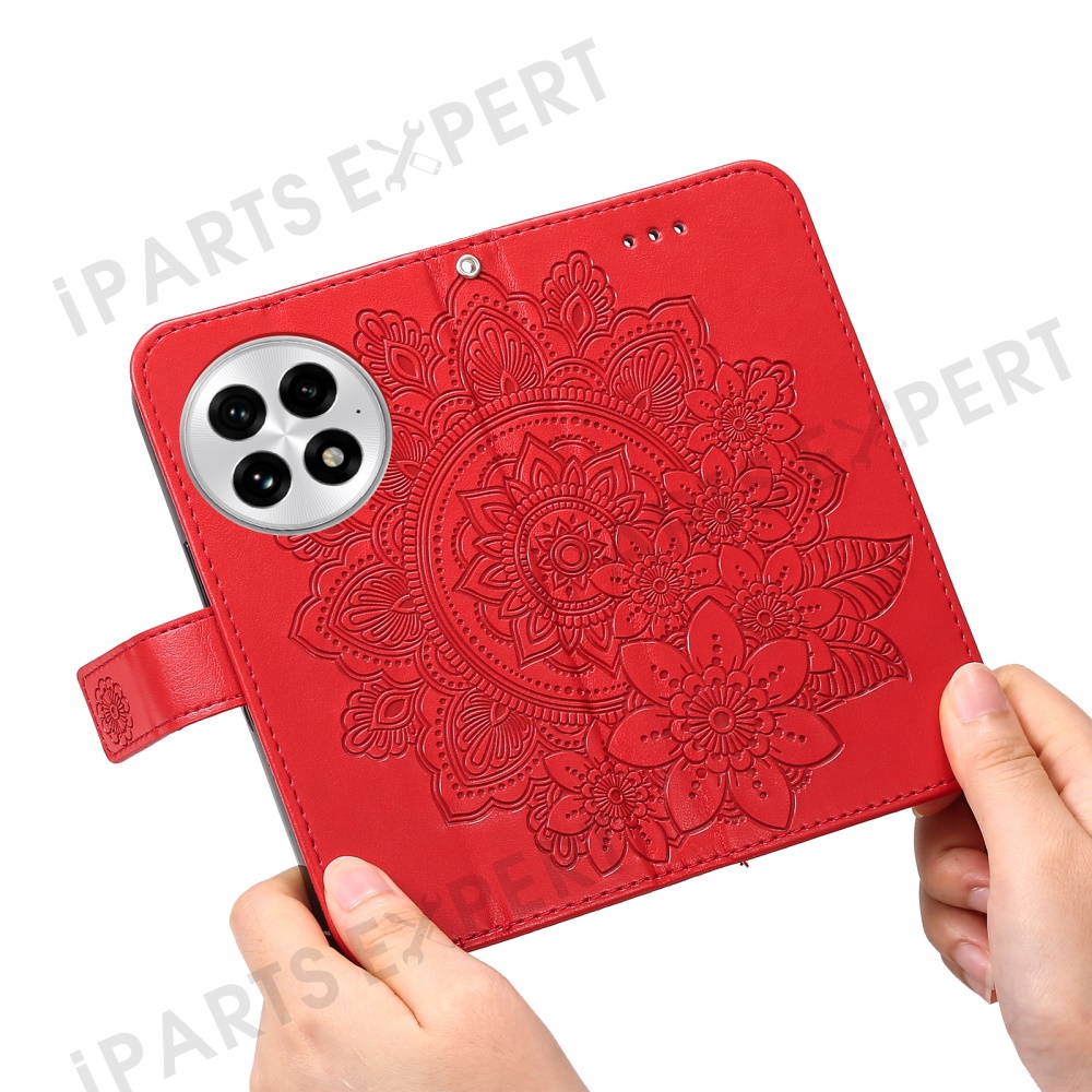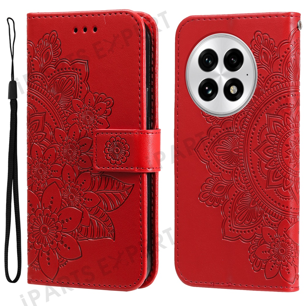 For OnePlus 13 Case Floral Pattern PU Leather Wallet Stand Phone Cover - Red