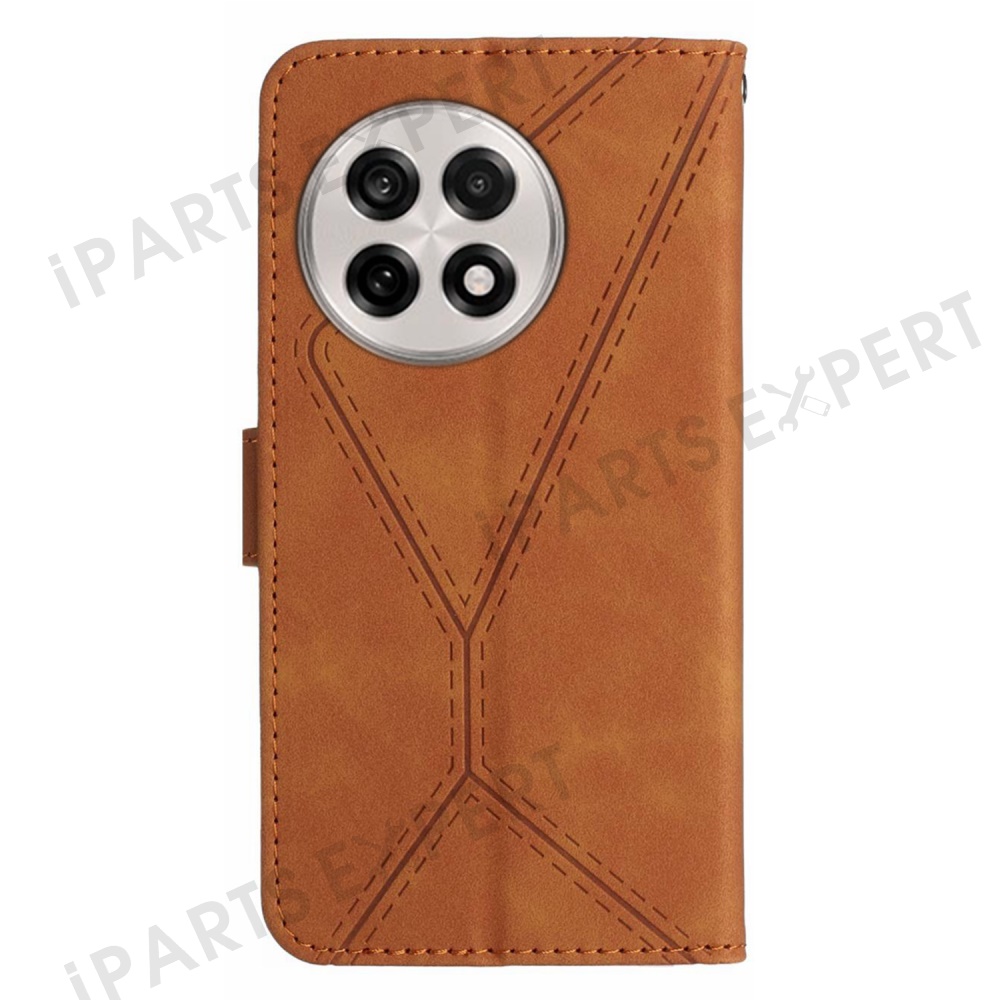 For OnePlus 13 Case Skin Touch Lines Imprinted PU Leather Flip Phone Cover - Brown