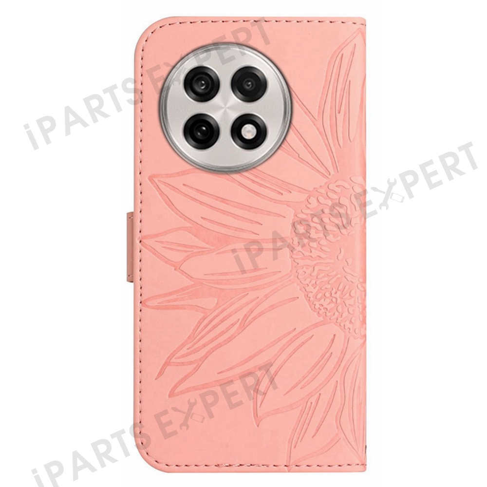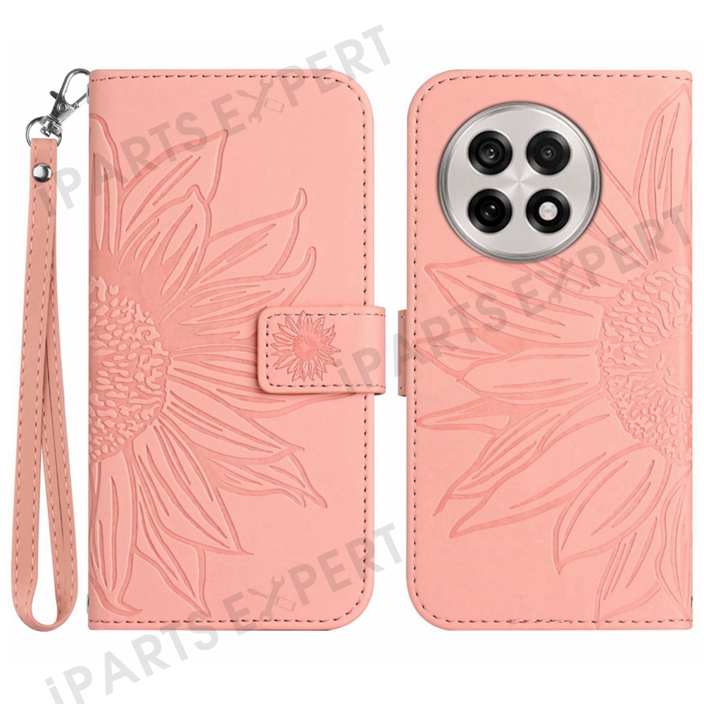 For OnePlus 13 Case Sunflower Imprint Leather Wallet Phone Cover with Wrist Strap - Light Pink