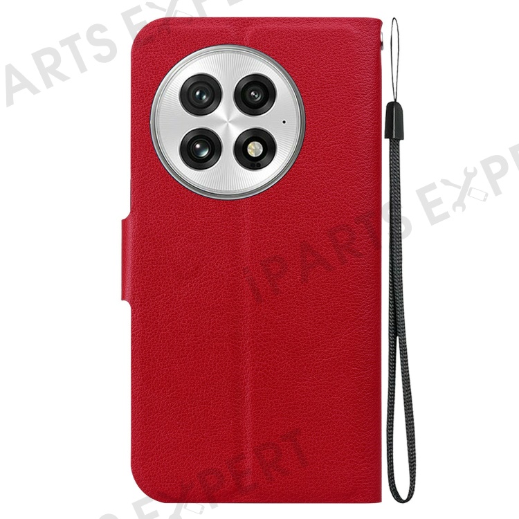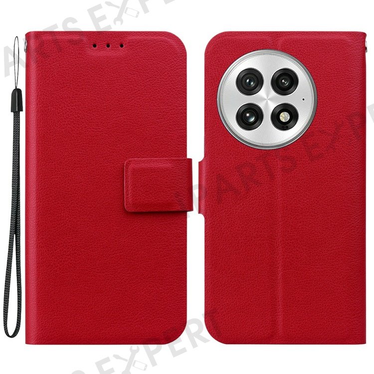 For OnePlus 13 Case Ultra-Thin PU Leather + TPU Phone Cover with Card Slot - Red