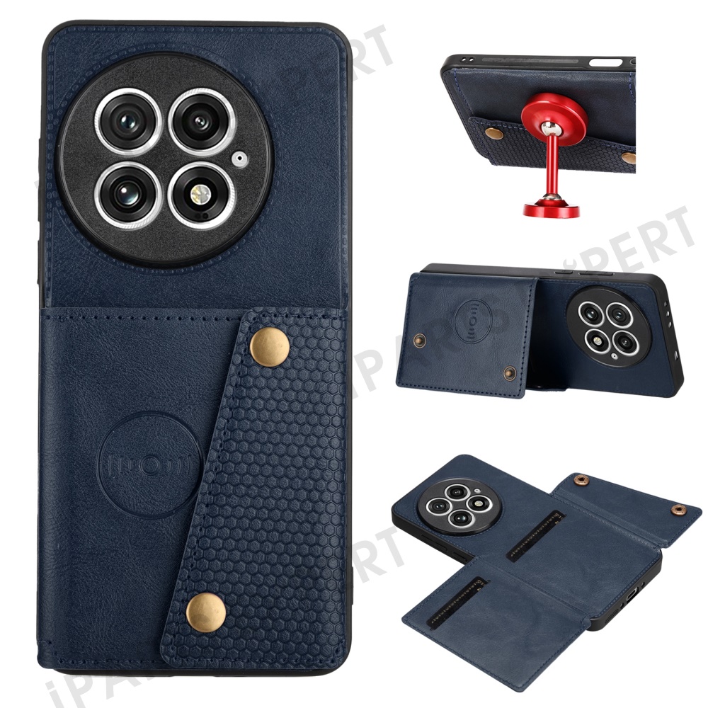 For OnePlus 13 Case with Card Slots Kickstand Leather + TPU Phone Cover - Blue