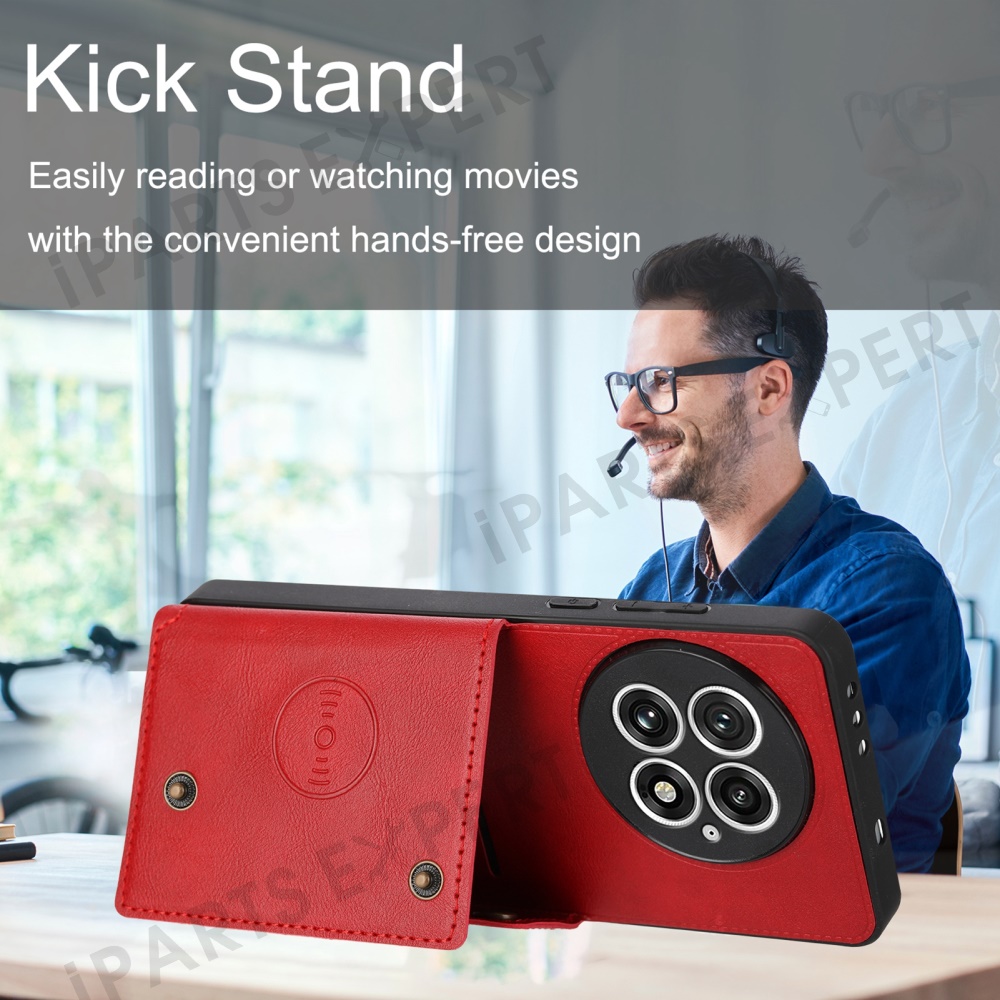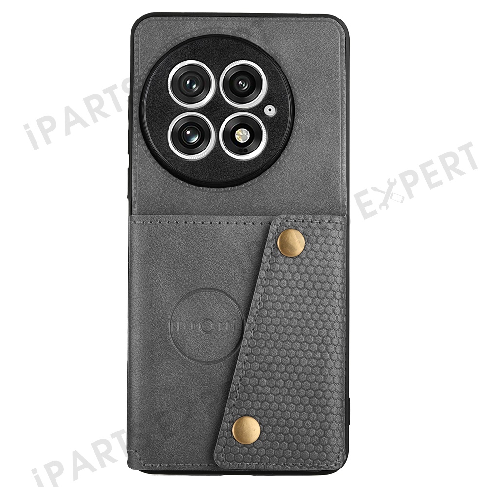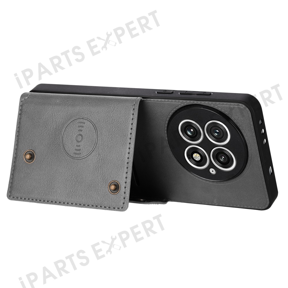 For OnePlus 13 Case with Card Slots Kickstand Leather + TPU Phone Cover - Grey