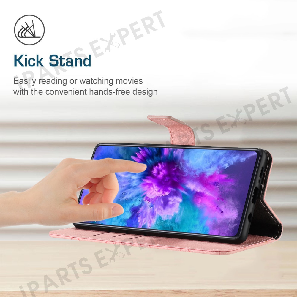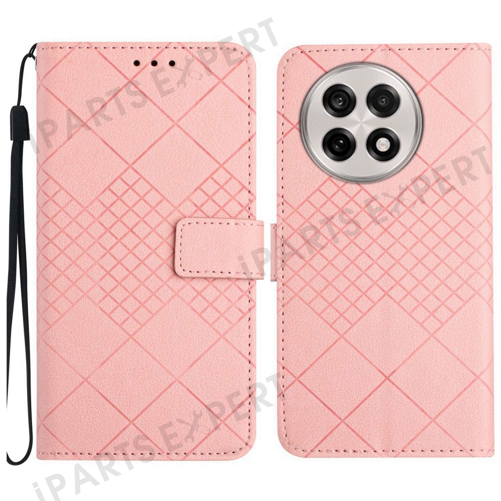 For OnePlus 13 Wallet Phone Case Imprint PU Leather Flip Folio Cover - Pink